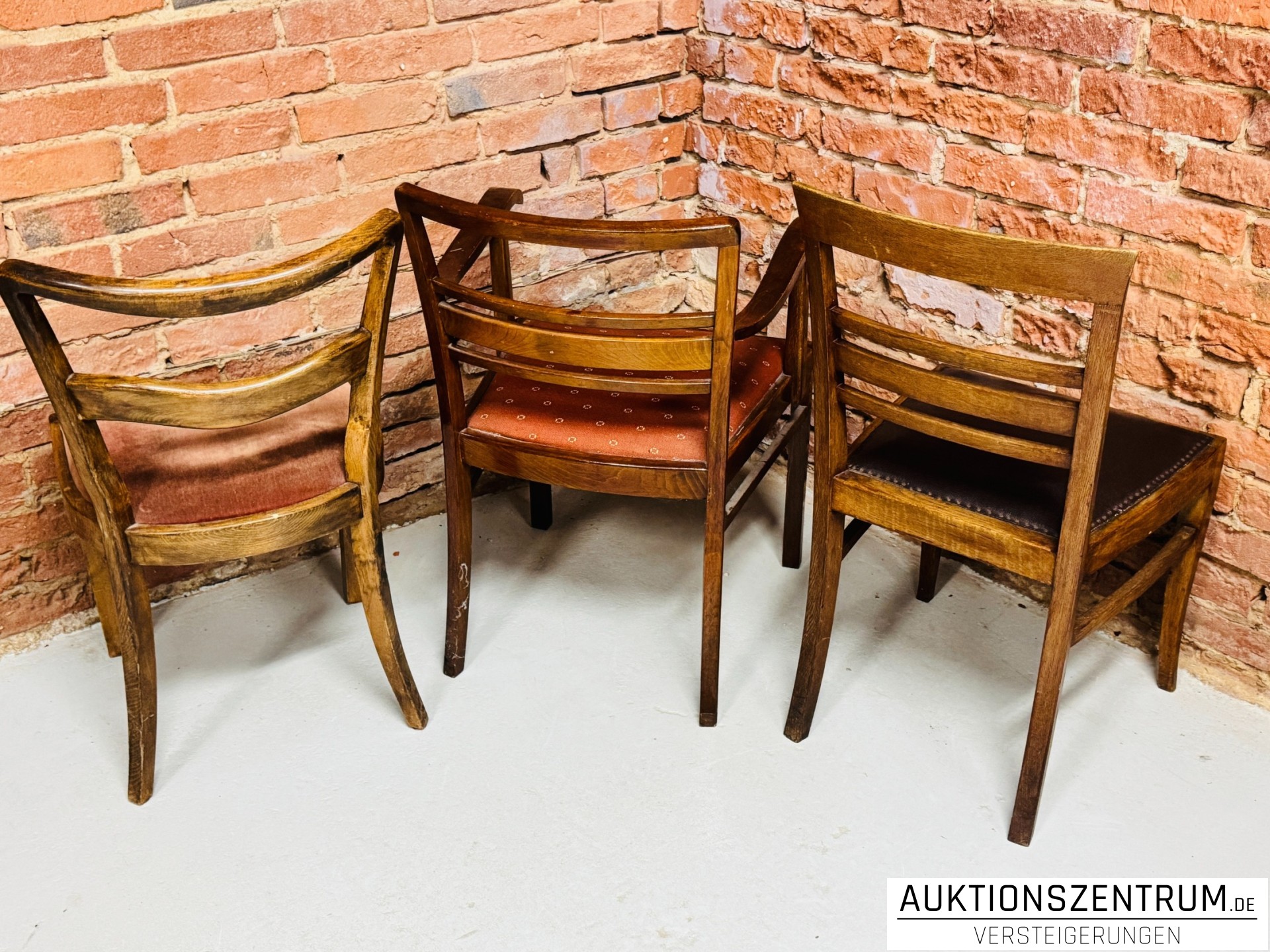 3 vintage Holz-Stühle mit und ohne Armlehnen