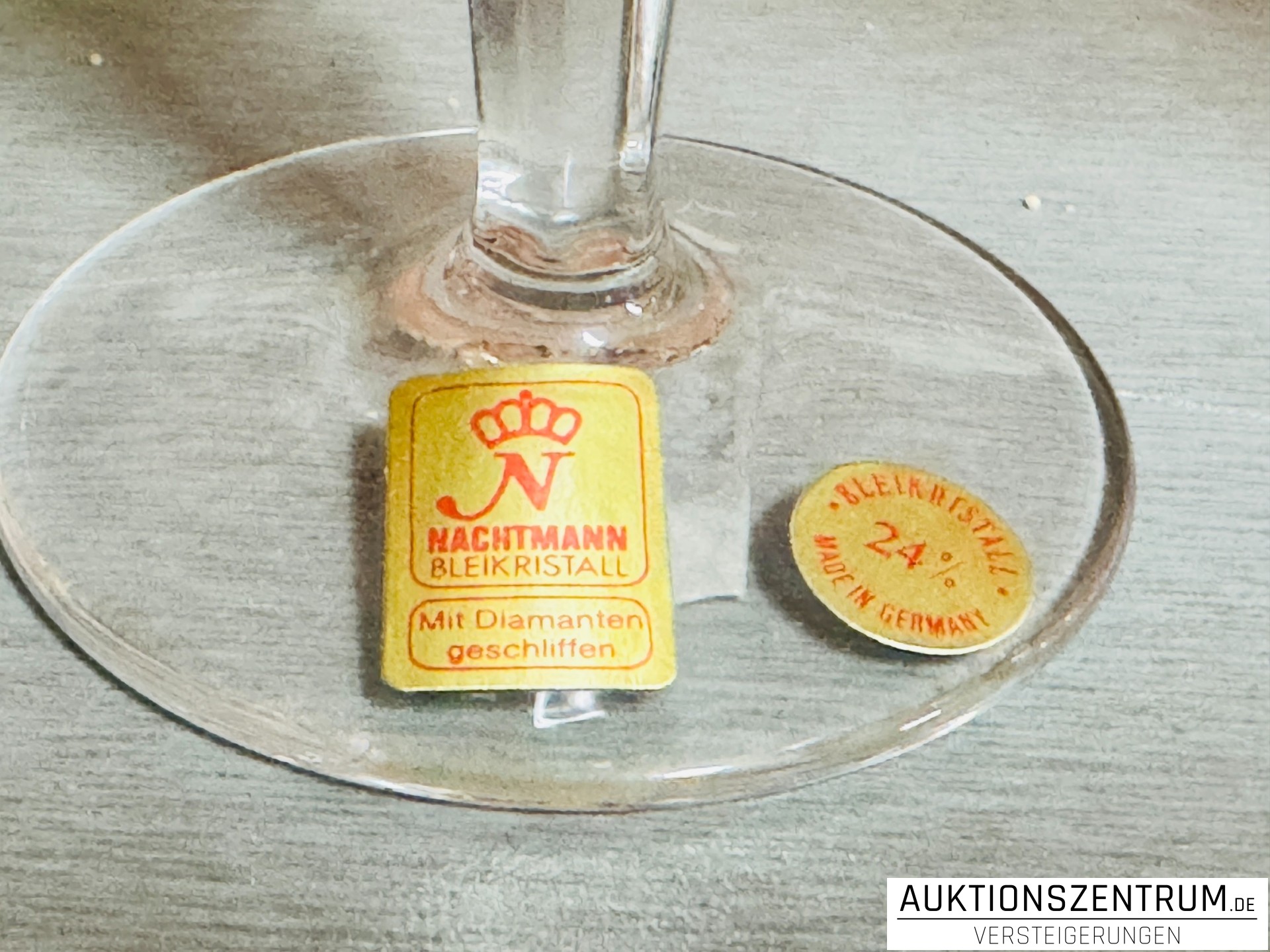 Alle Gläser mit originalen Nachtmann Papieretiketten "Nachtmann Bleikristall – Mit Diamanten geschliffen" sowie Rundetikett "Bleikristall 24 % – Made in Germany".