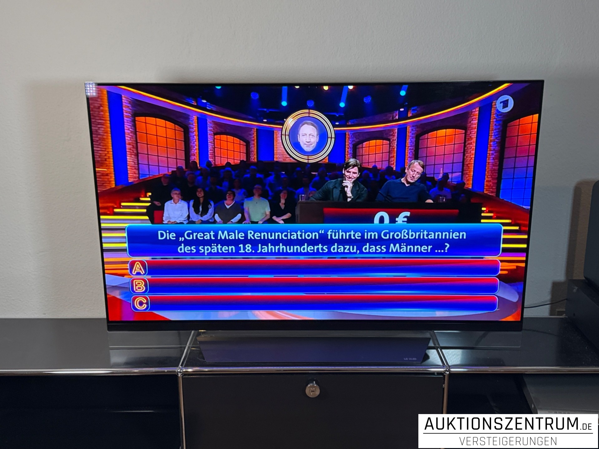 Hochwertiger LG OLED-Fernseher, Modell OLED55E8LLA, mit einer Bildschirmdiagonale von 55 Zoll. Das Gerät bietet dank OLED-Technologie eine sehr hohe Bildqualität mit tiefem Schwarz und kräftigen Farben.