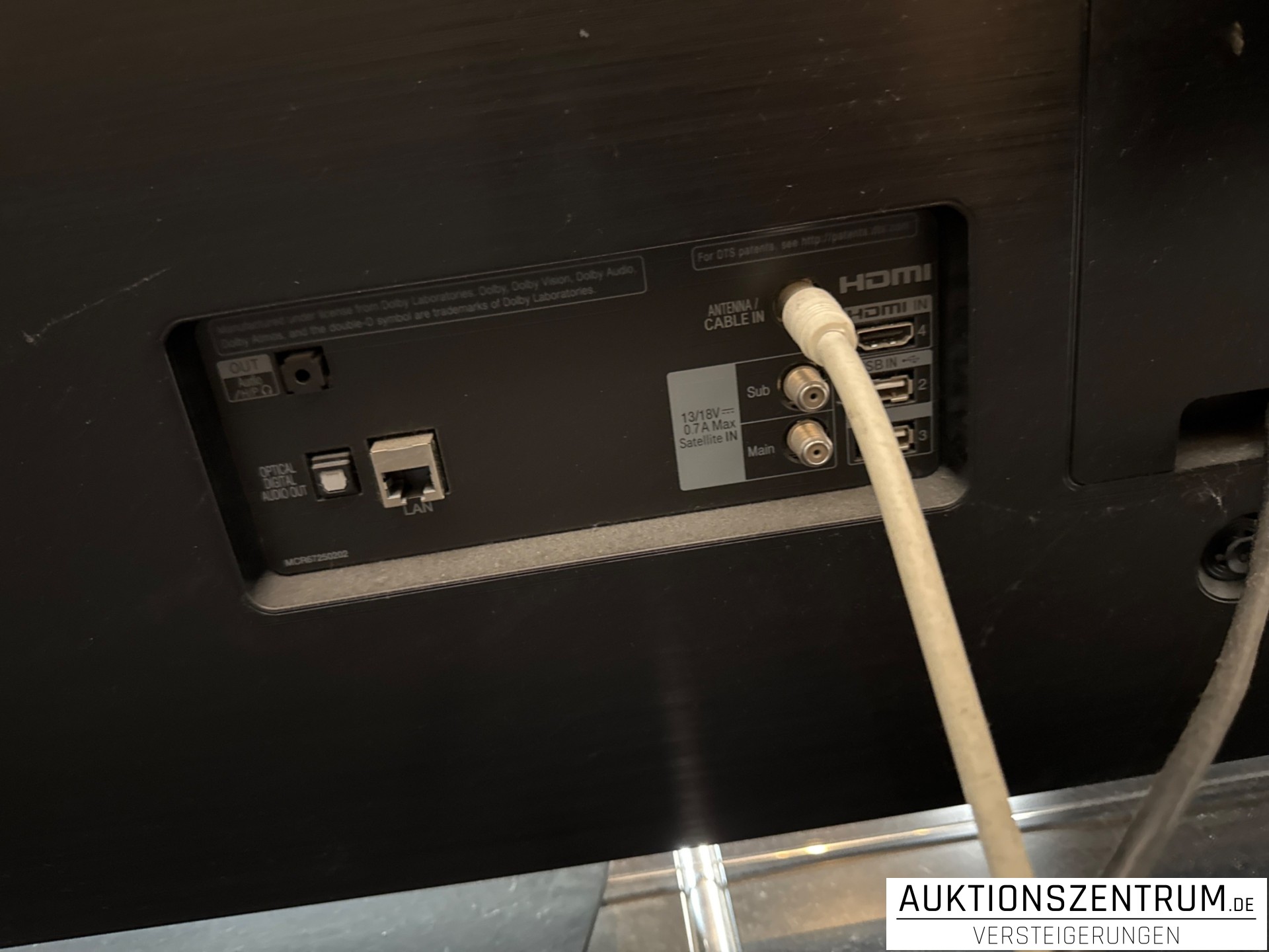 - Anschlüsse u. a.: HDMI-Eingänge, Antennen-/Kabeleingang, LAN-Anschluss, optischer Digitalausgang