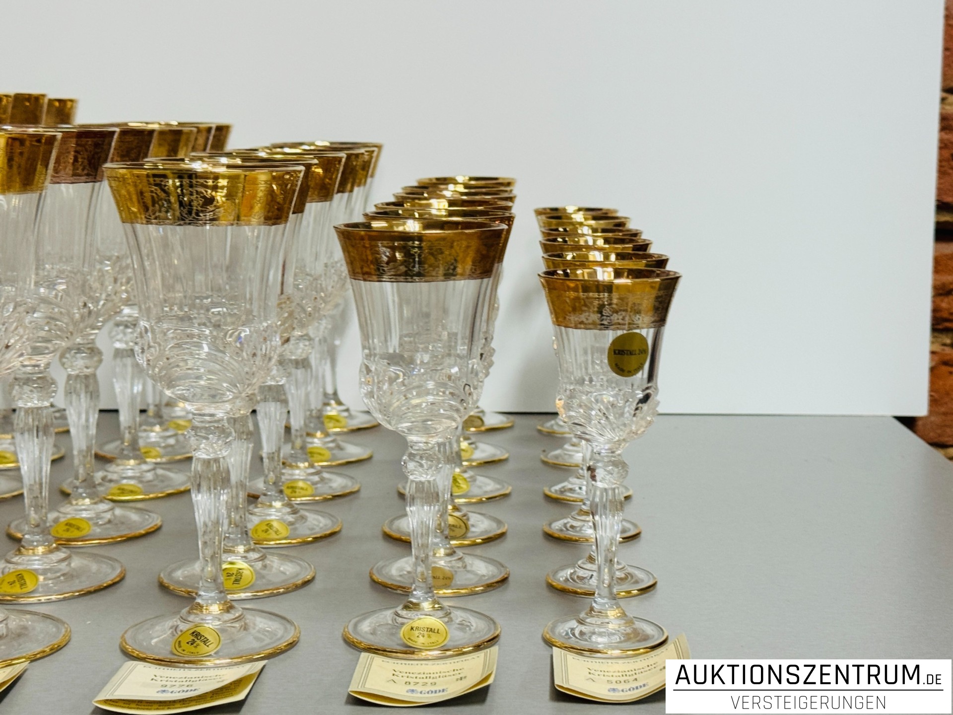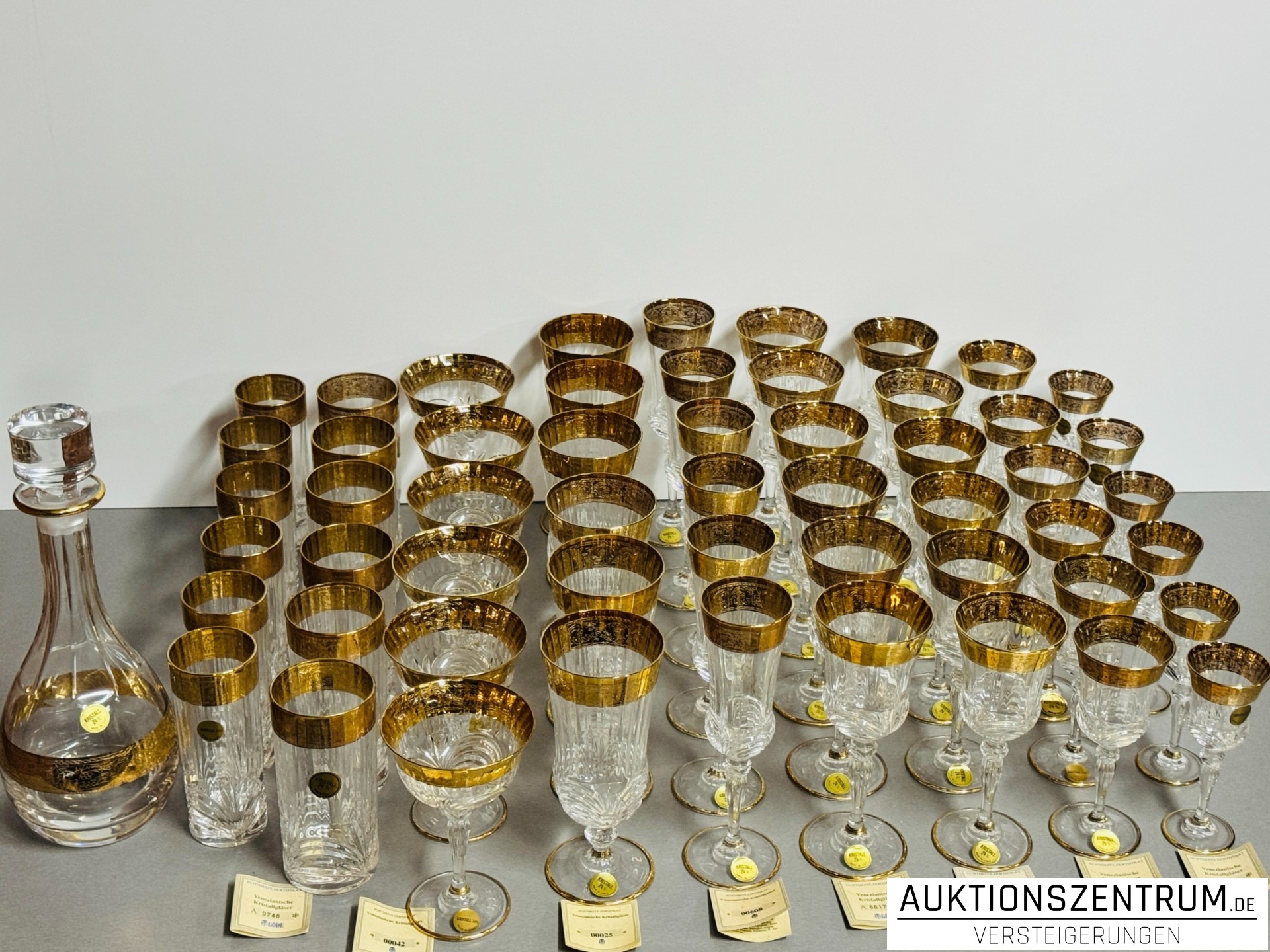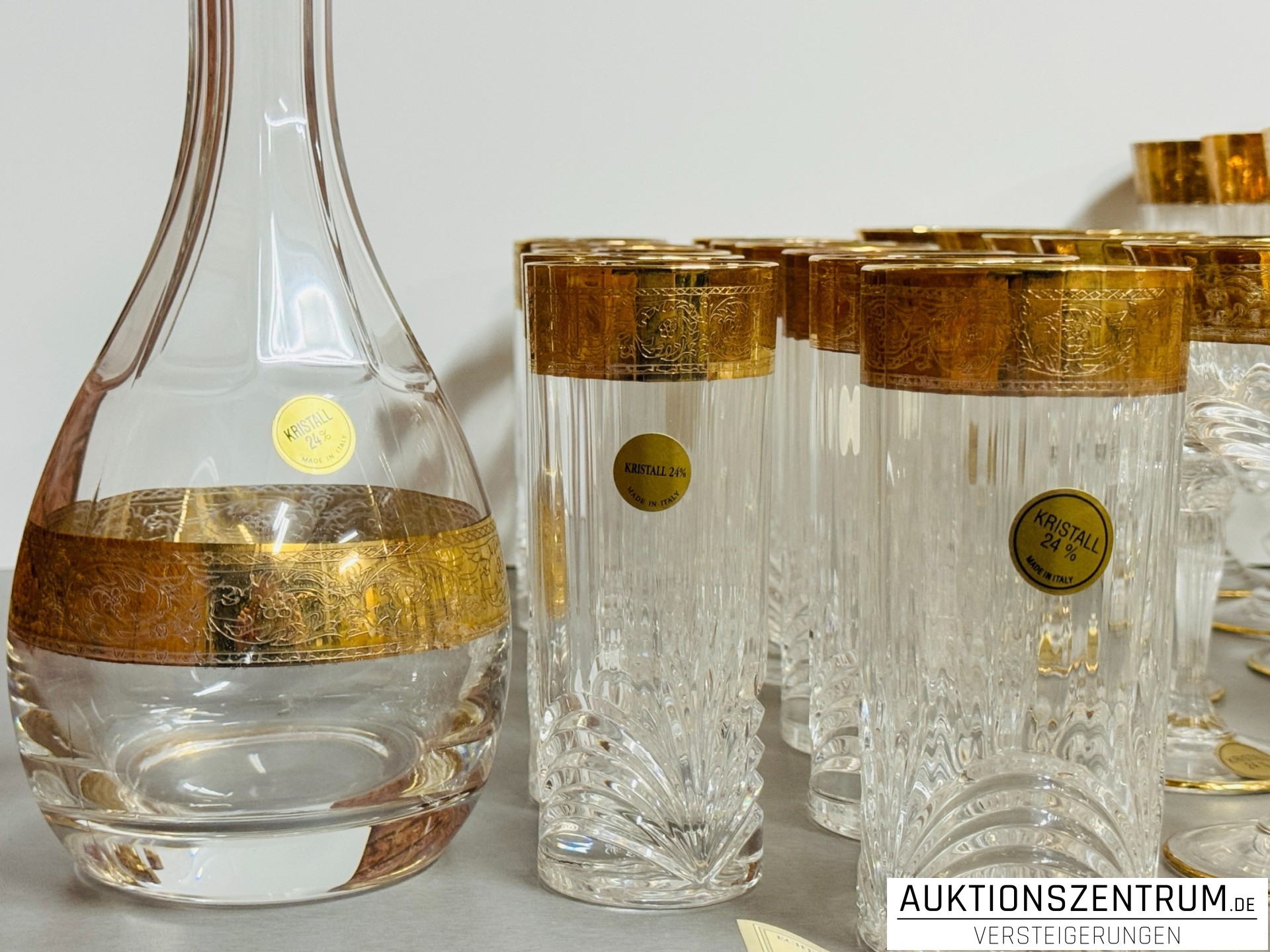 Los 79 - 55-teilig 24% Bleikristall Service mit Echtgolddekor Gläser und Karaffe Italien