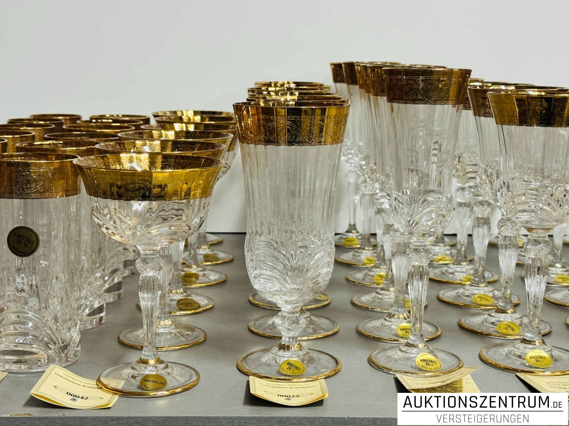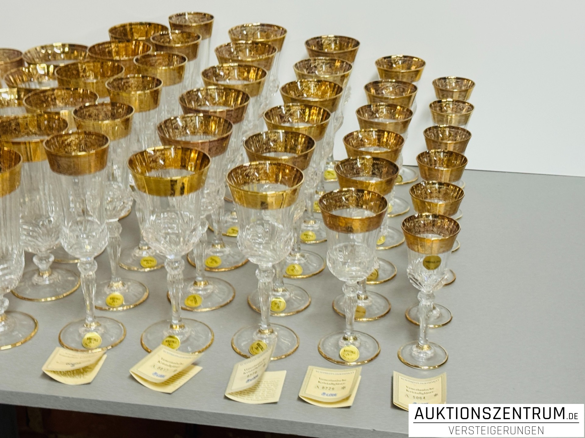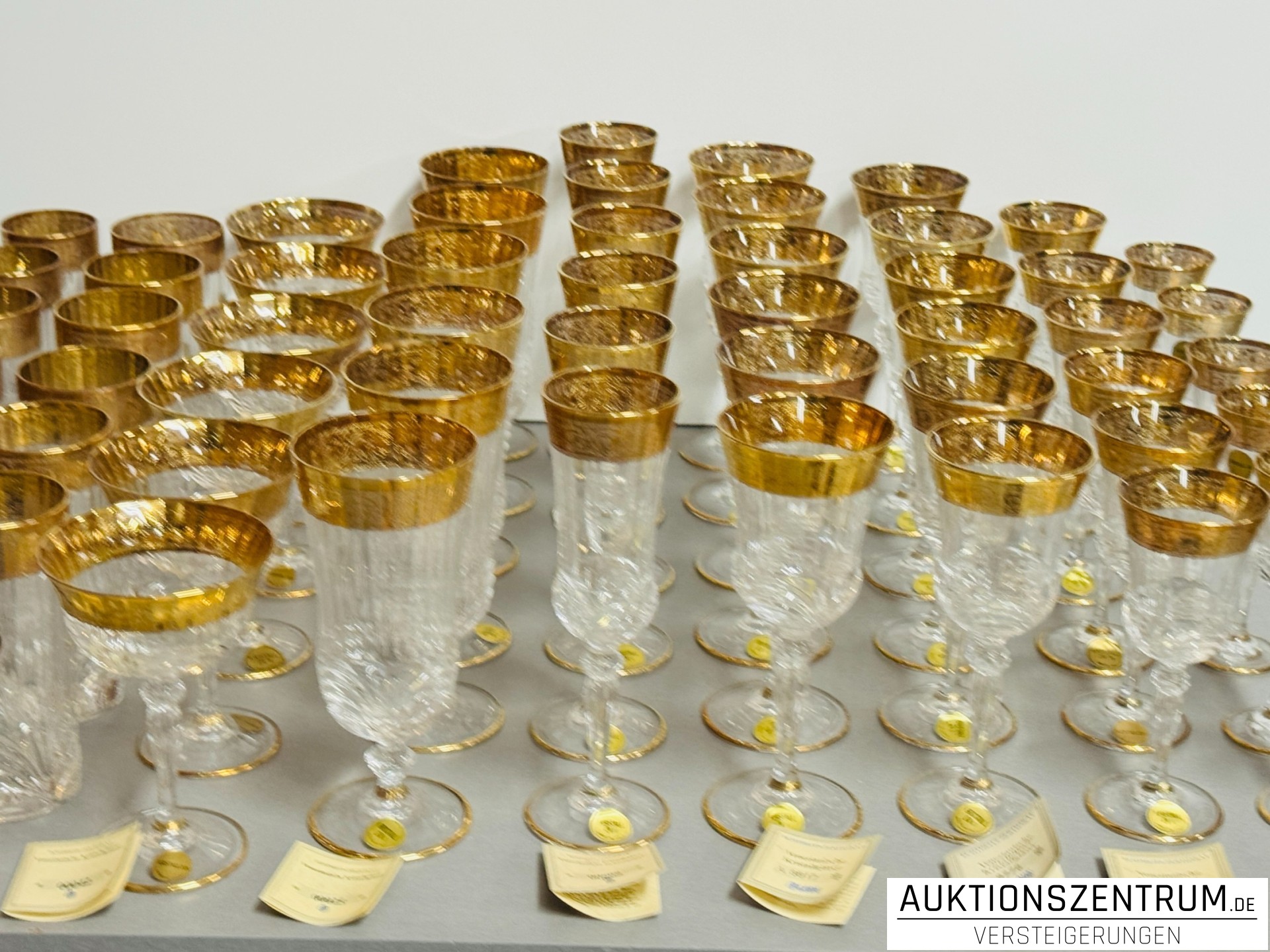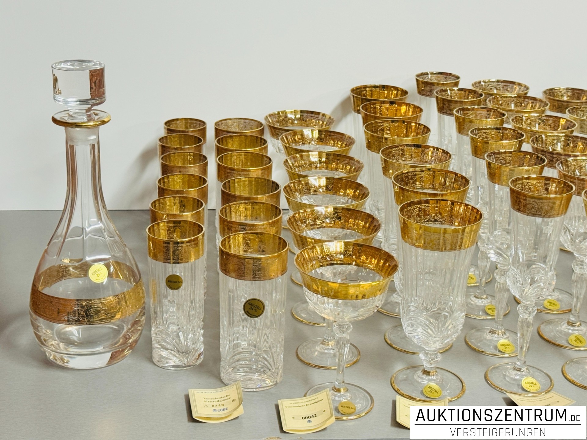 Los 79 - 55-teilig 24% Bleikristall Service mit Echtgolddekor Gläser und Karaffe Italien