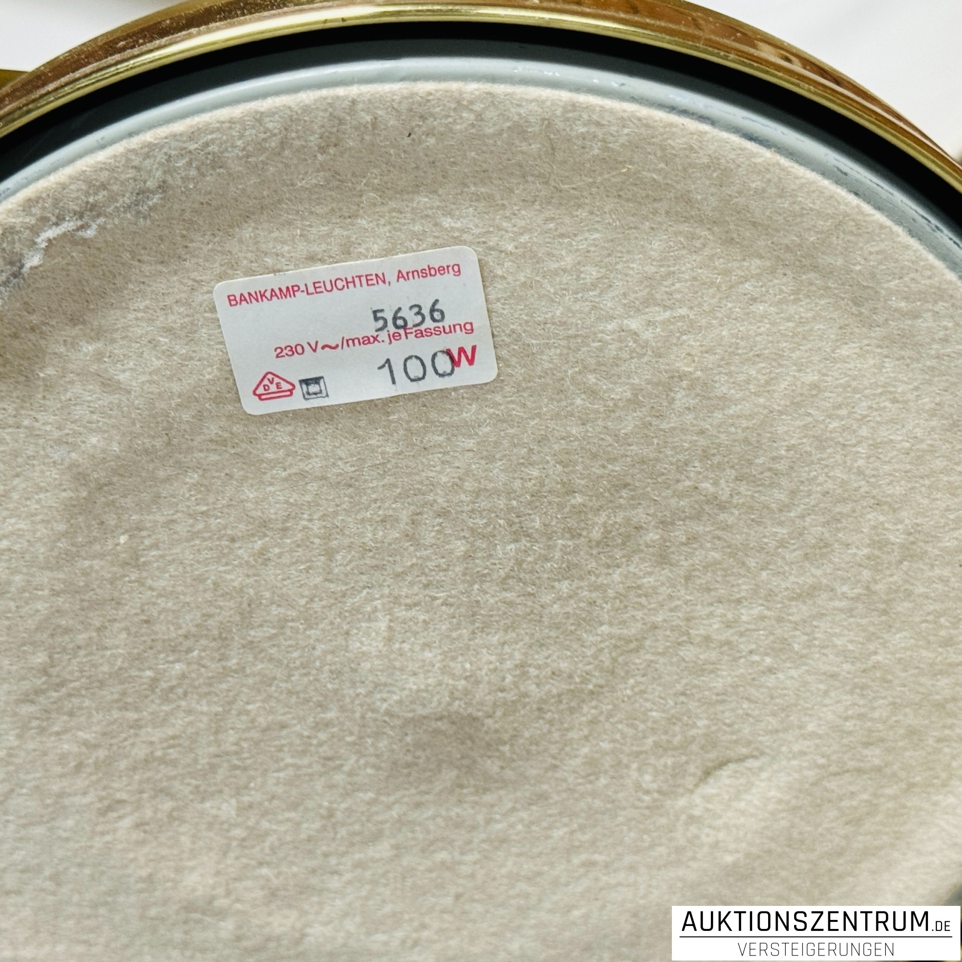 Die Leuchte ist mit Netzkabel und Schalter ausgestattet. Übliche, altersgemäße Gebrauchsspuren, insgesamt gepflegter, funktionsfähiger Eindruck.