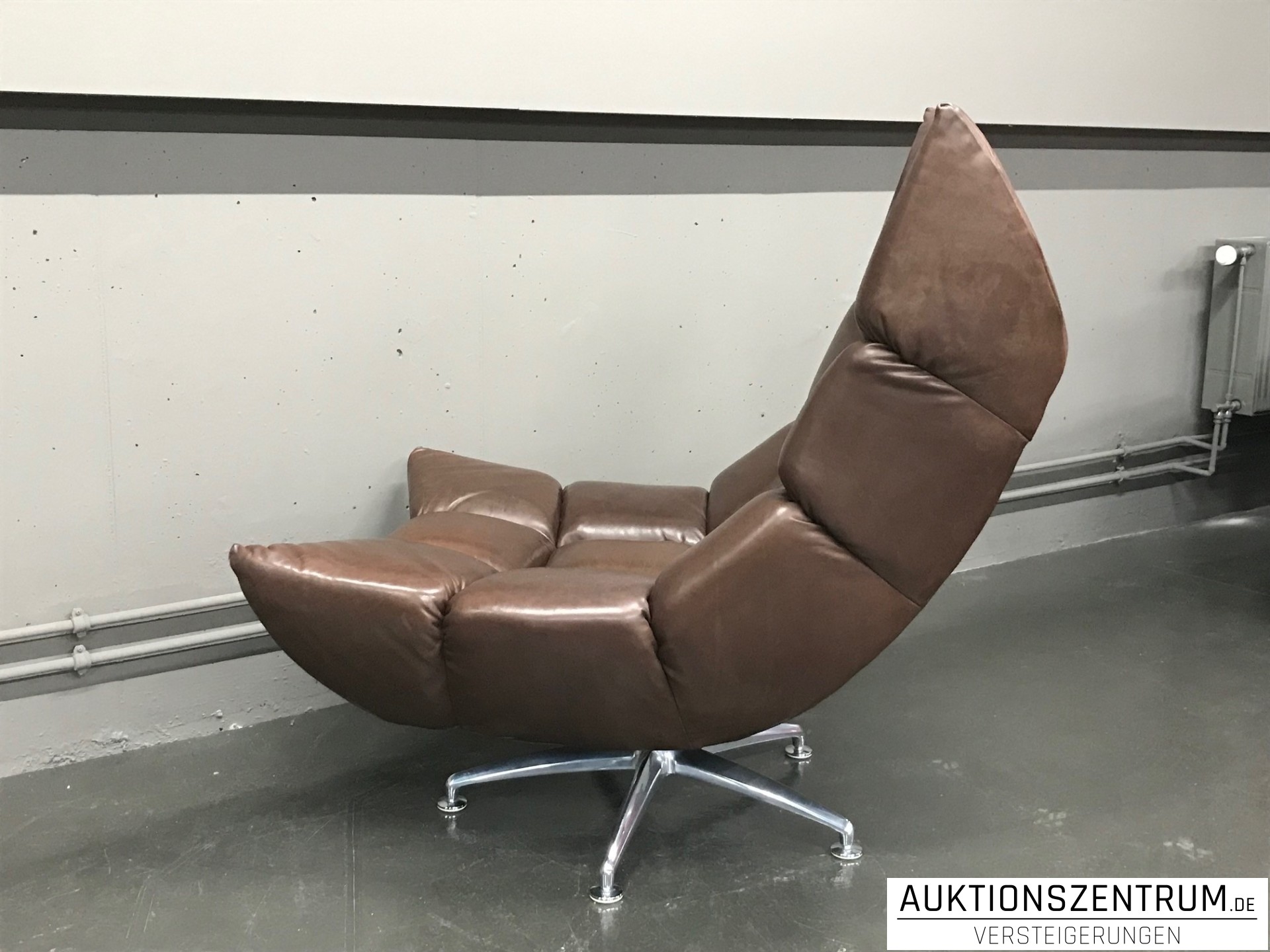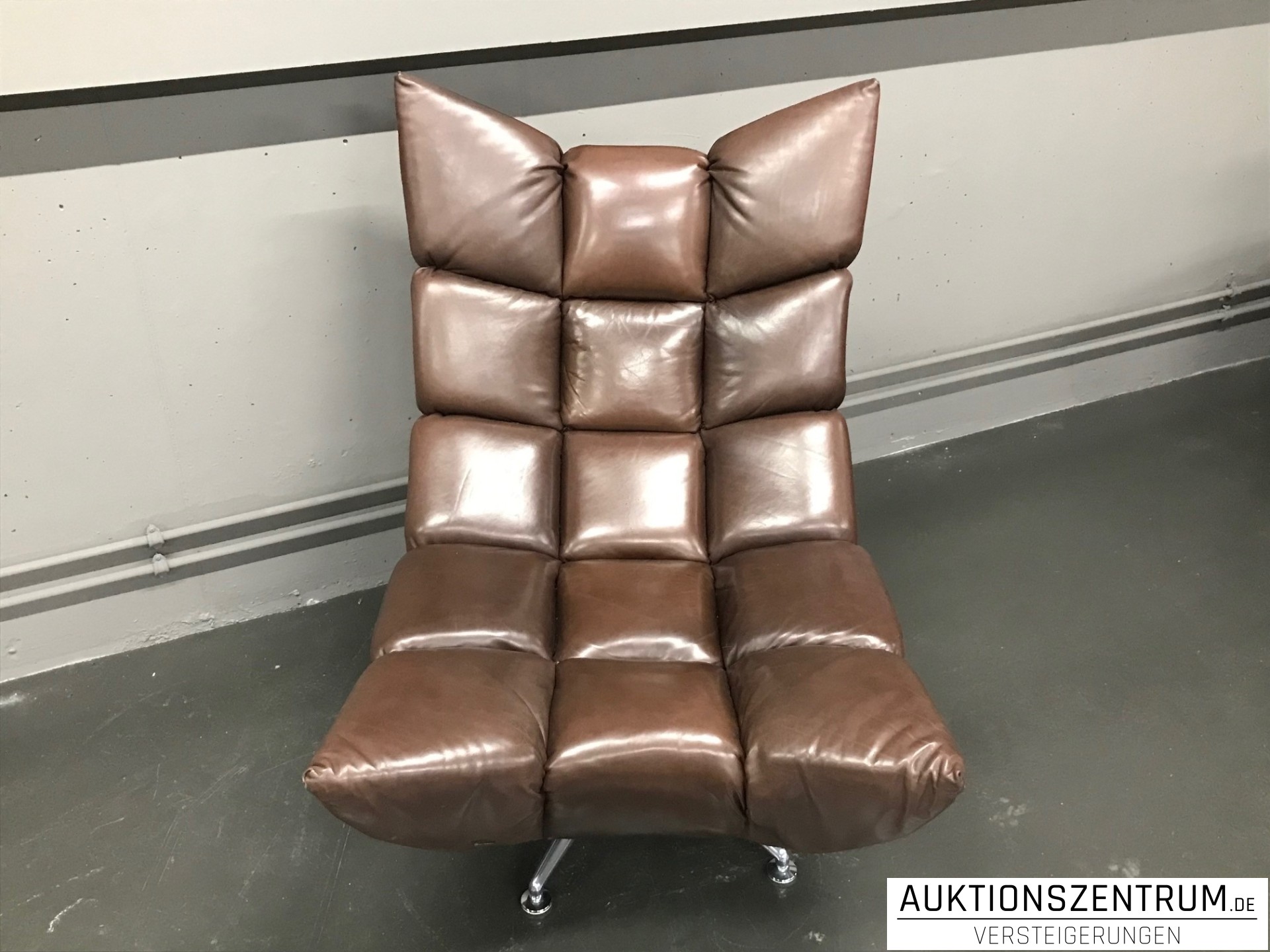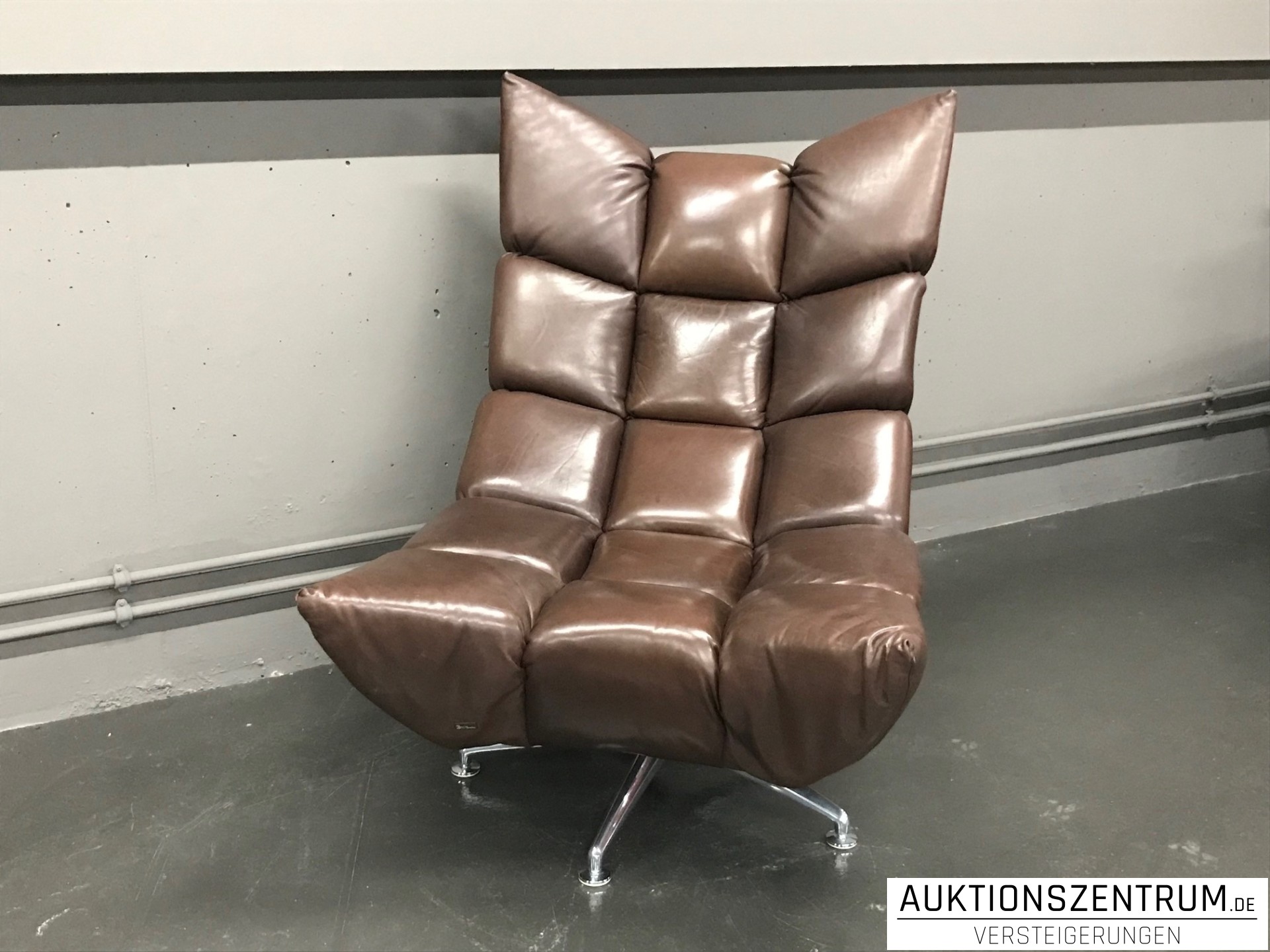 Bretz Desginer Hangout Drehsessel Wippsessel & Hocker, Leder braun
