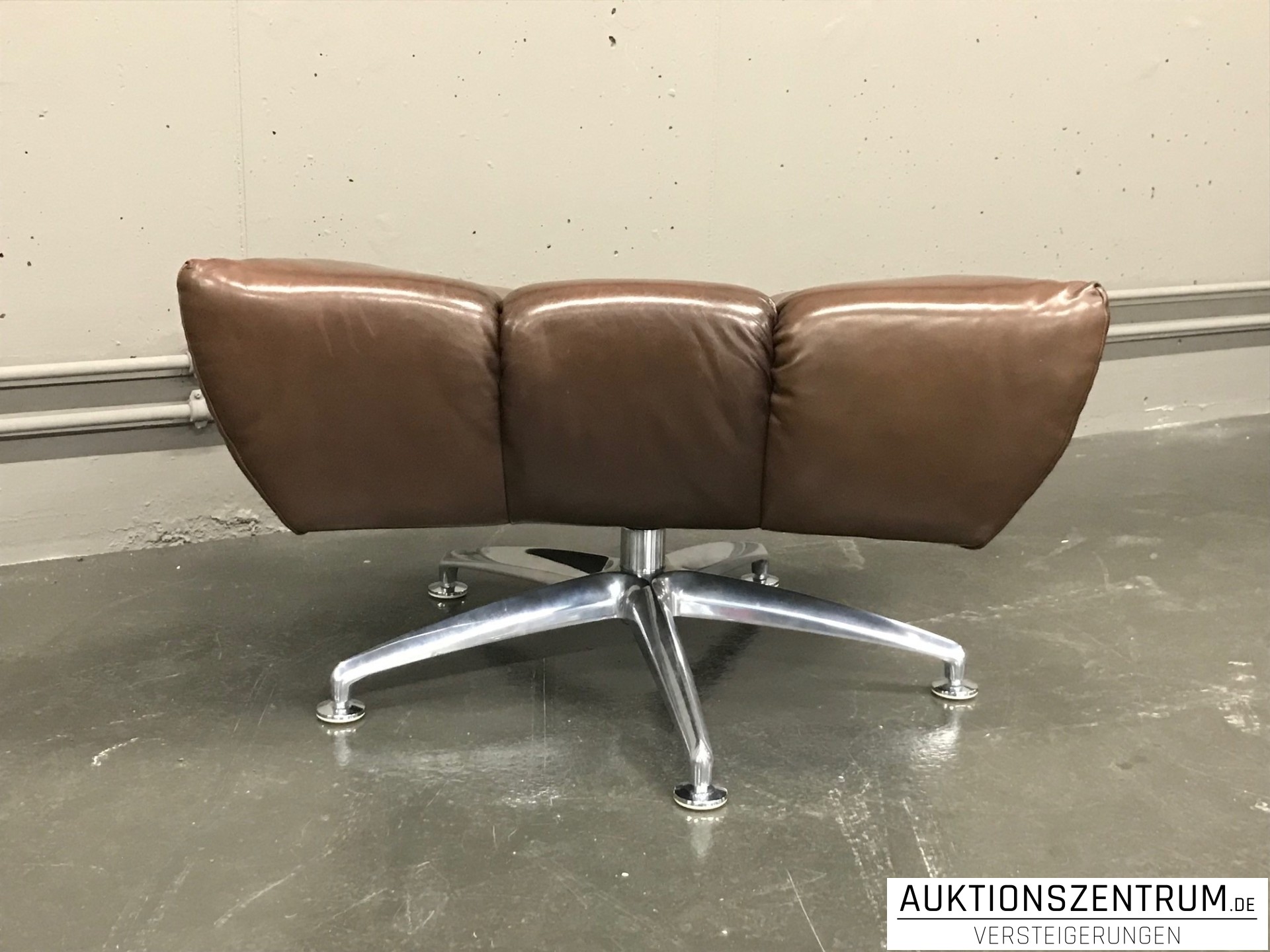 Los 3 - Bretz Desginer Hangout Drehsessel Wippsessel & Hocker, Leder braun