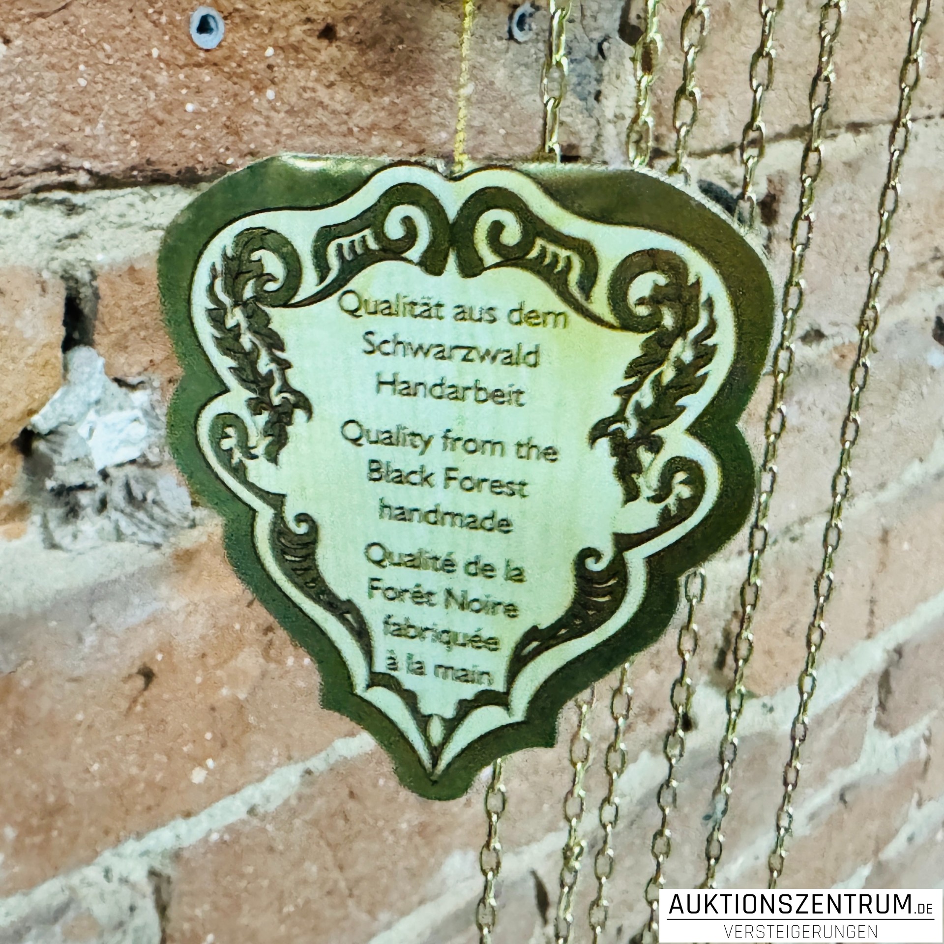 An einer Kette hängt ein originaler Herstelleranhänger „Dönes – Qualität aus dem Schwarzwald – Handarbeit“.