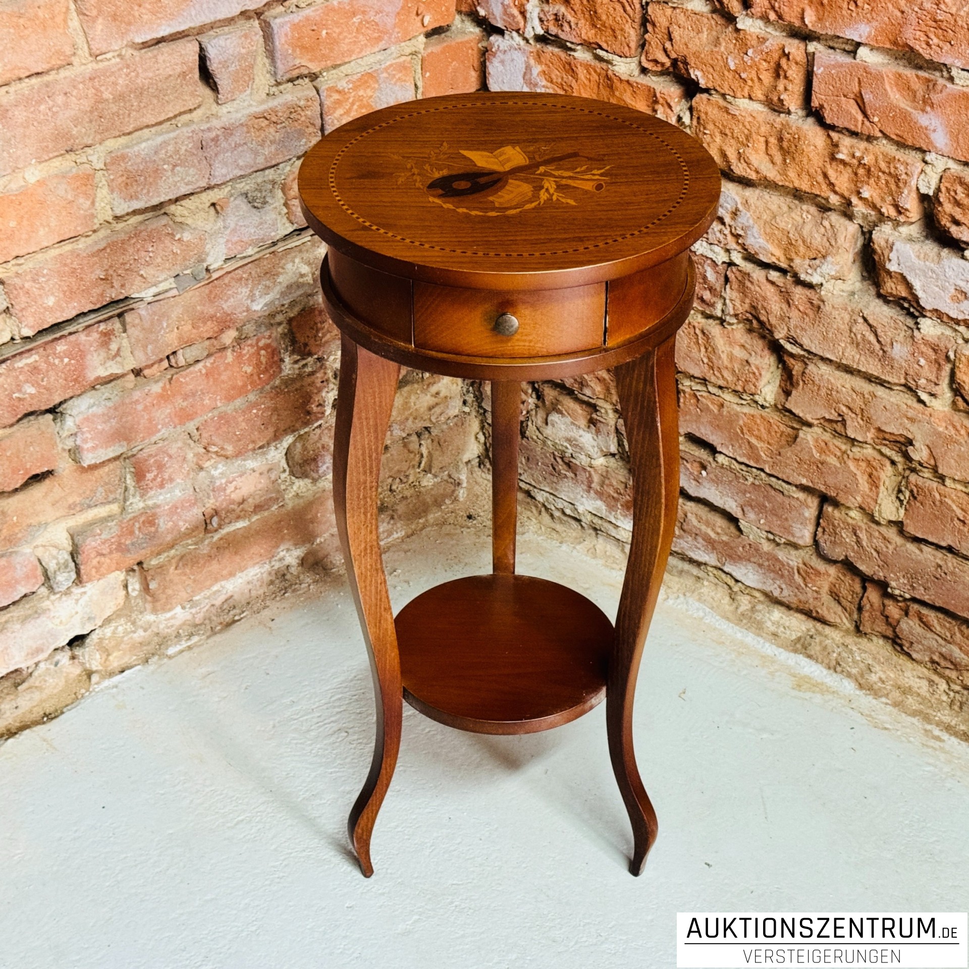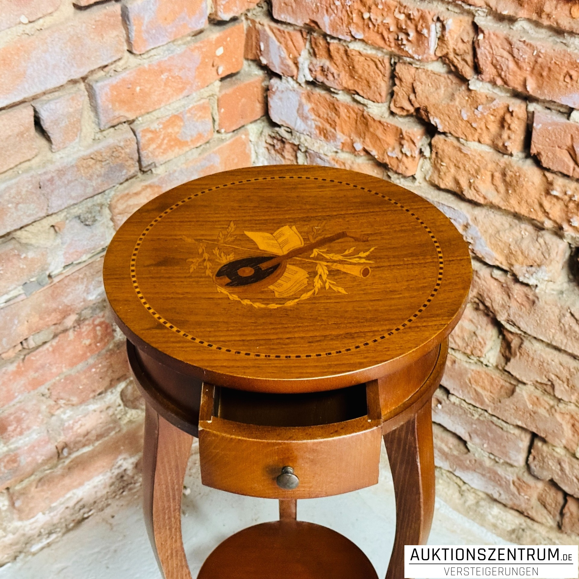 Los 107 - Kl. Runder Beistelltisch m. Intarsien & Schublade, Nussbaum, 70*33 cm