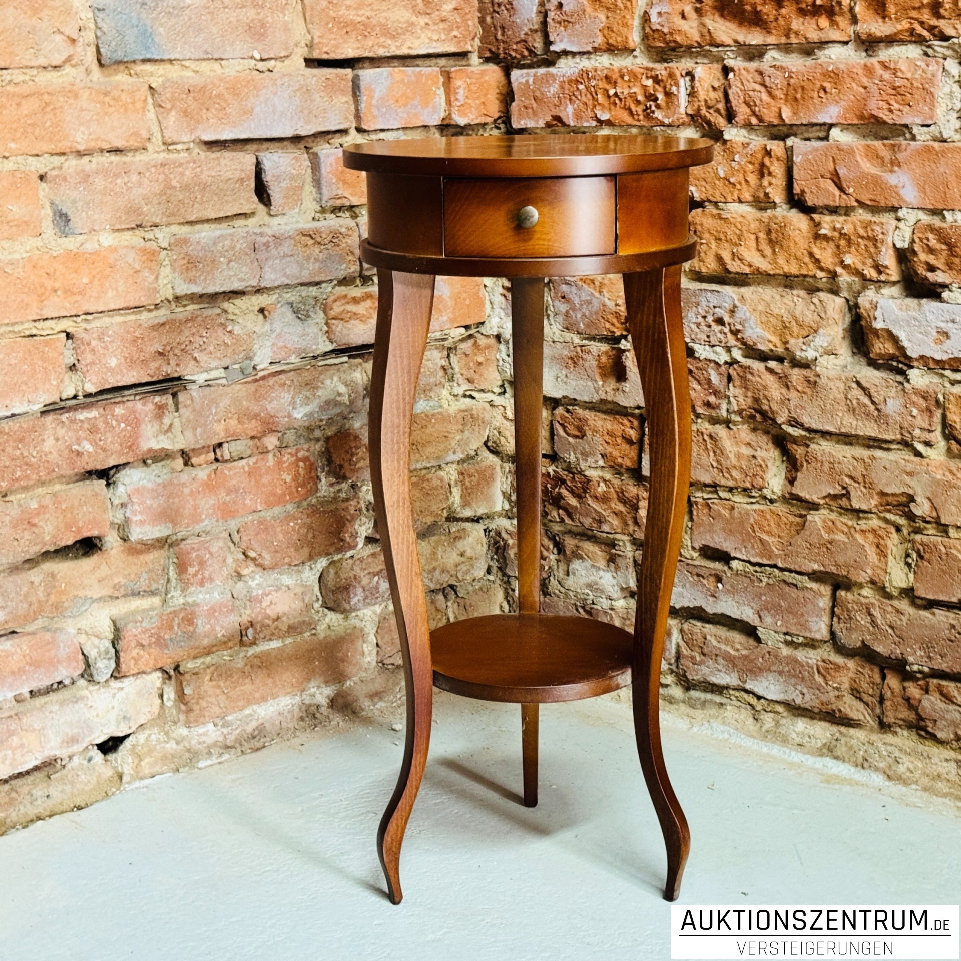 Kl. Runder Beistelltisch m. Intarsien & Schublade, Nussbaum, 70*33 cm