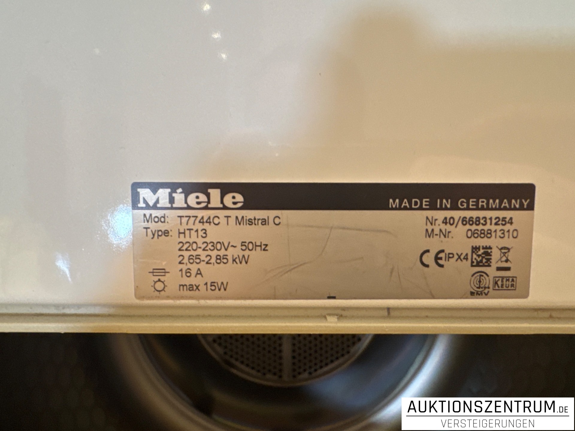 Los 72 - Miele Kondenstrockner T7744C T Mistral C / HT13 Frontlader weiß