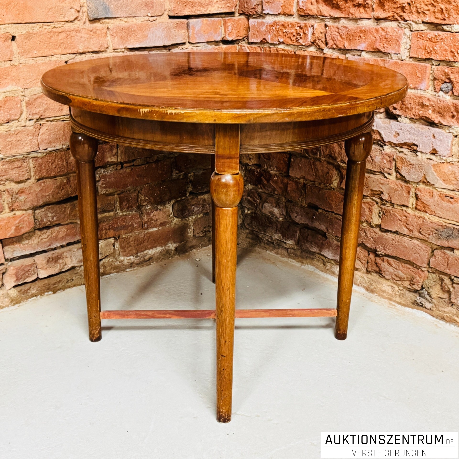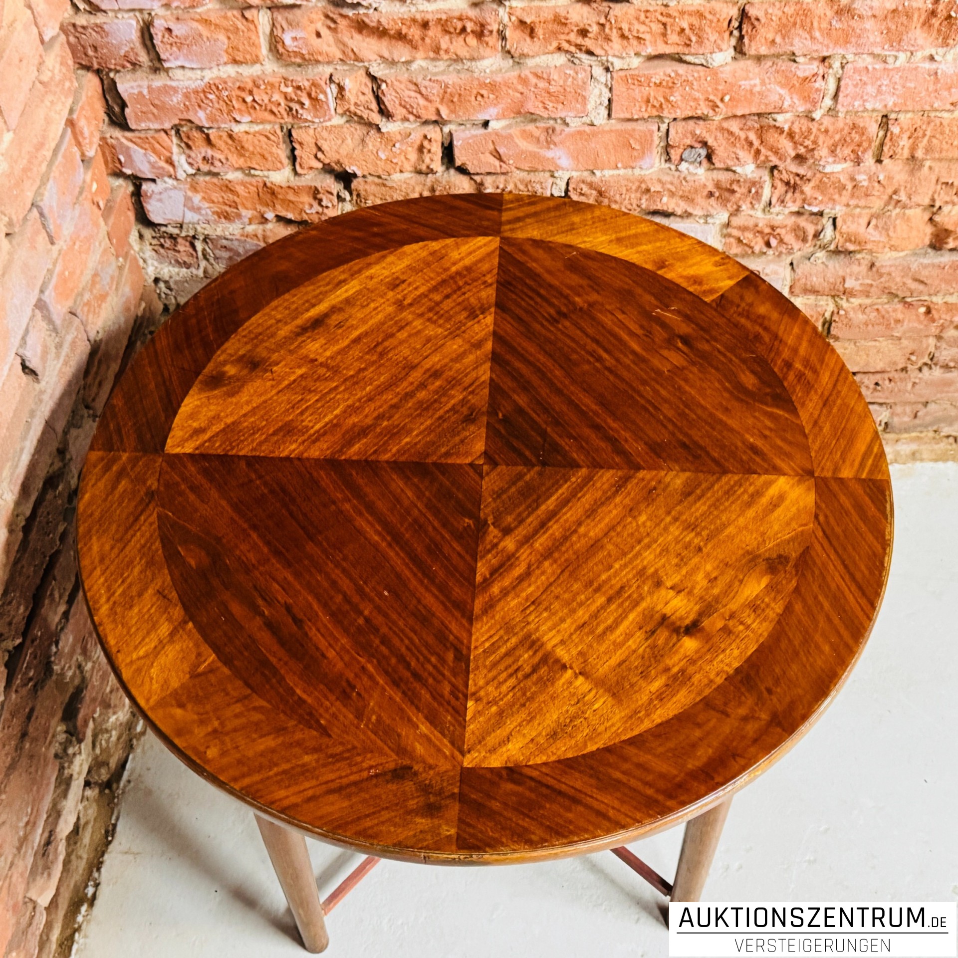 Los 92 - Runder Holz-Beistelltisch mit Intarsienplatte Ø80 x 70 cm