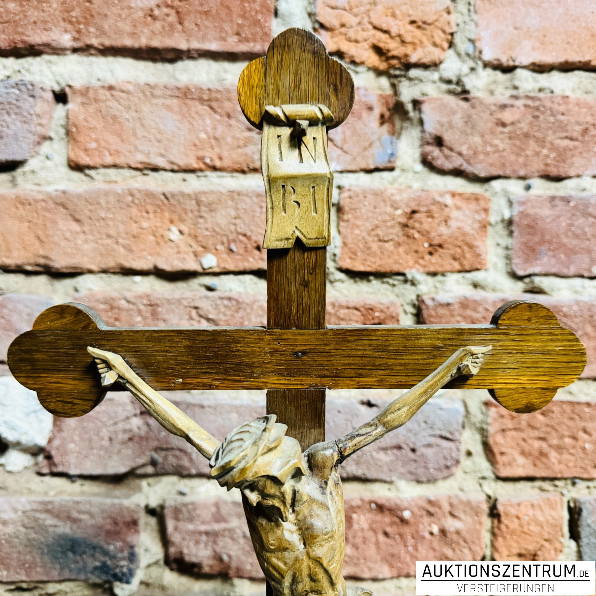 Spieluhr im Holz-Kruzifix mit geschnitztem Corpus, ca. 1kg