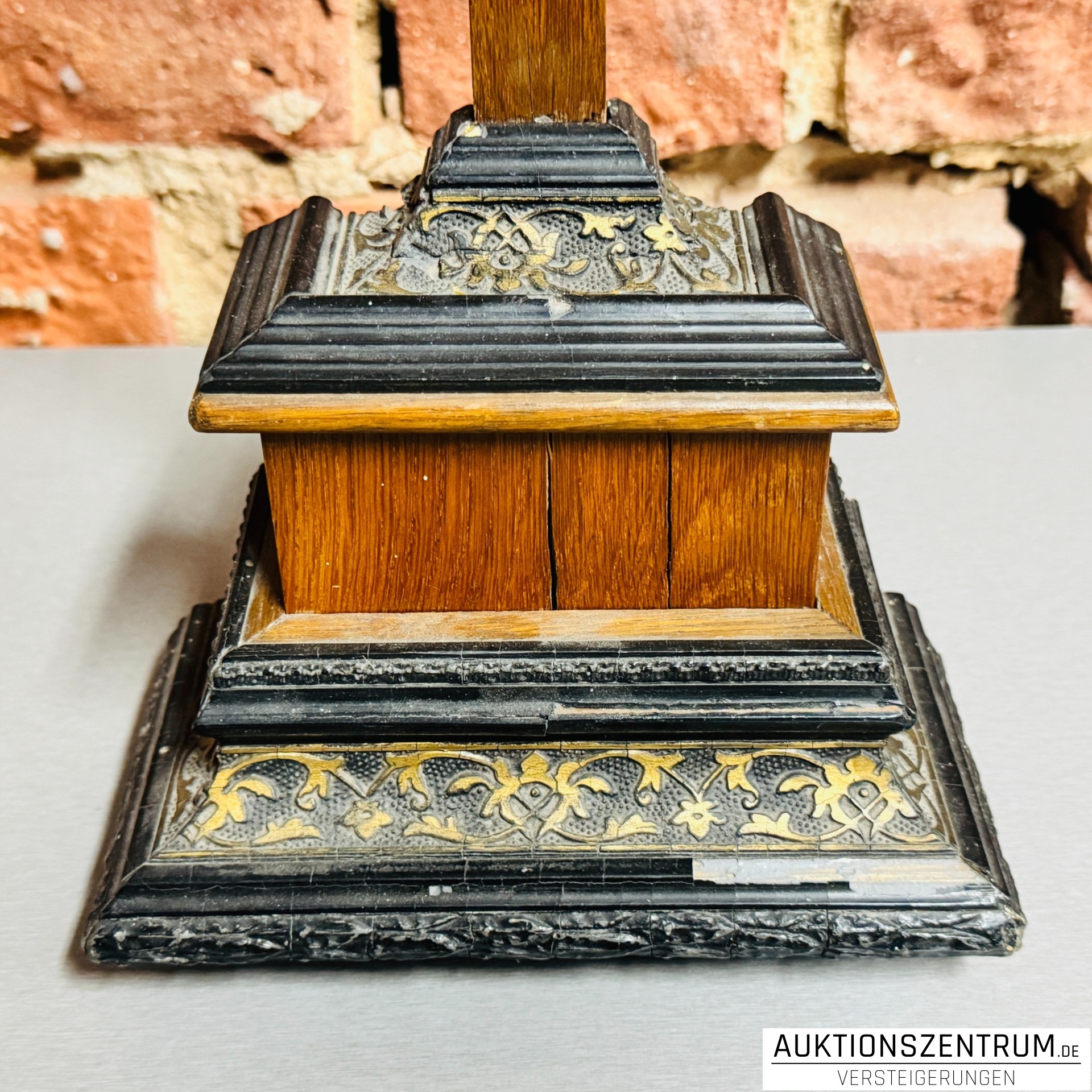 Spieluhr im Holz-Kruzifix mit geschnitztem Corpus, Christi auf Sockel 24*64cm