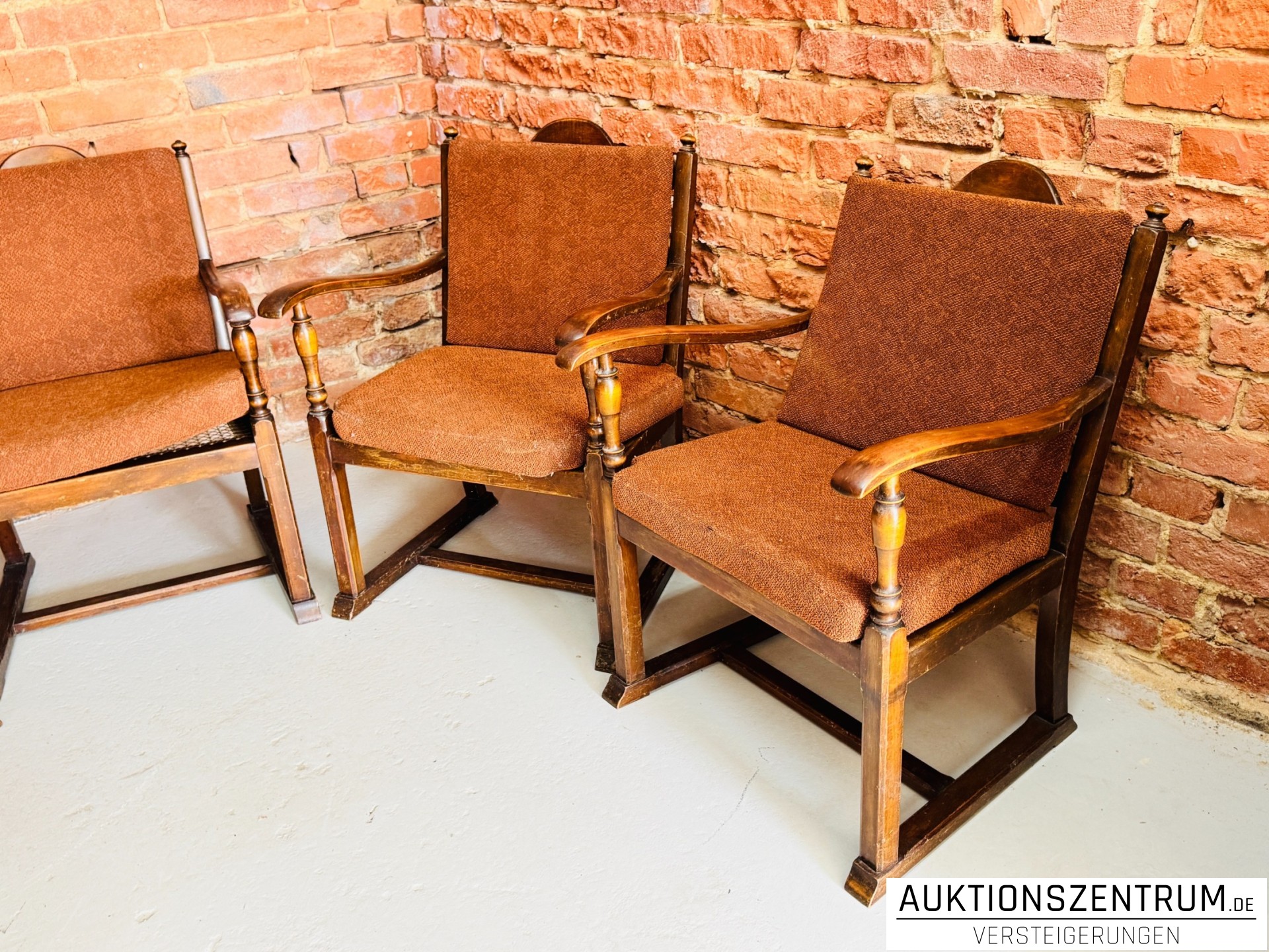 Die Stühle wirken als zusammengehörige Gruppe und eignen sich ideal für Wohn- oder Essbereich, Wartezone oder Gastronomie mit Vintage-Ambiente.