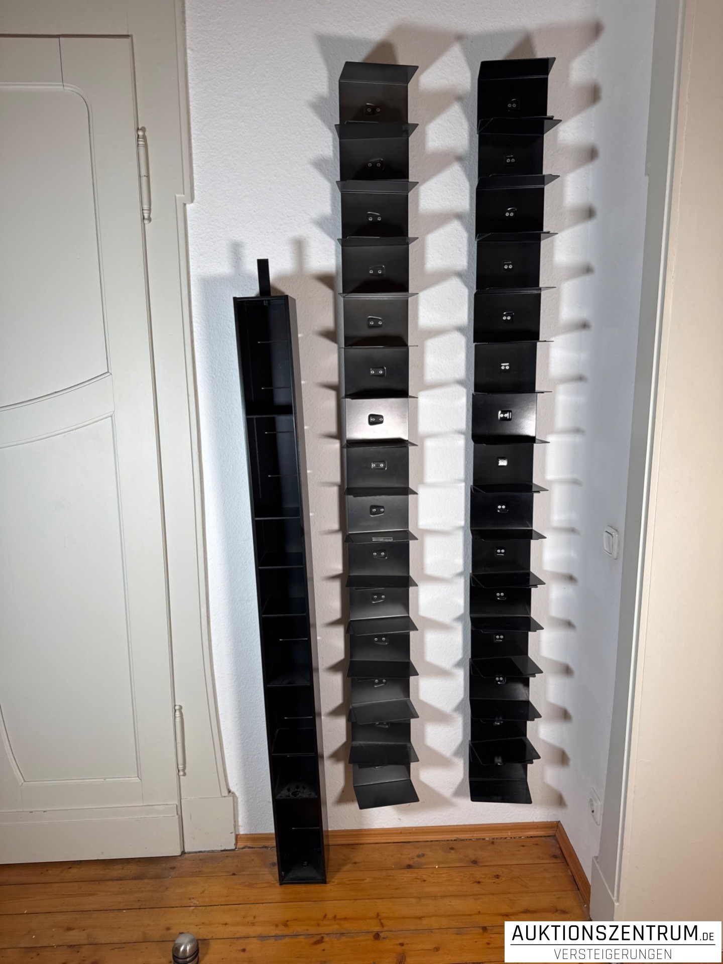 2x Ptolomeo Bücherregale mit 15 Fächern, ca. 25 x 210 x 19 cm und 1x CD-Regal, ca. 15 x 187 x 20 cm