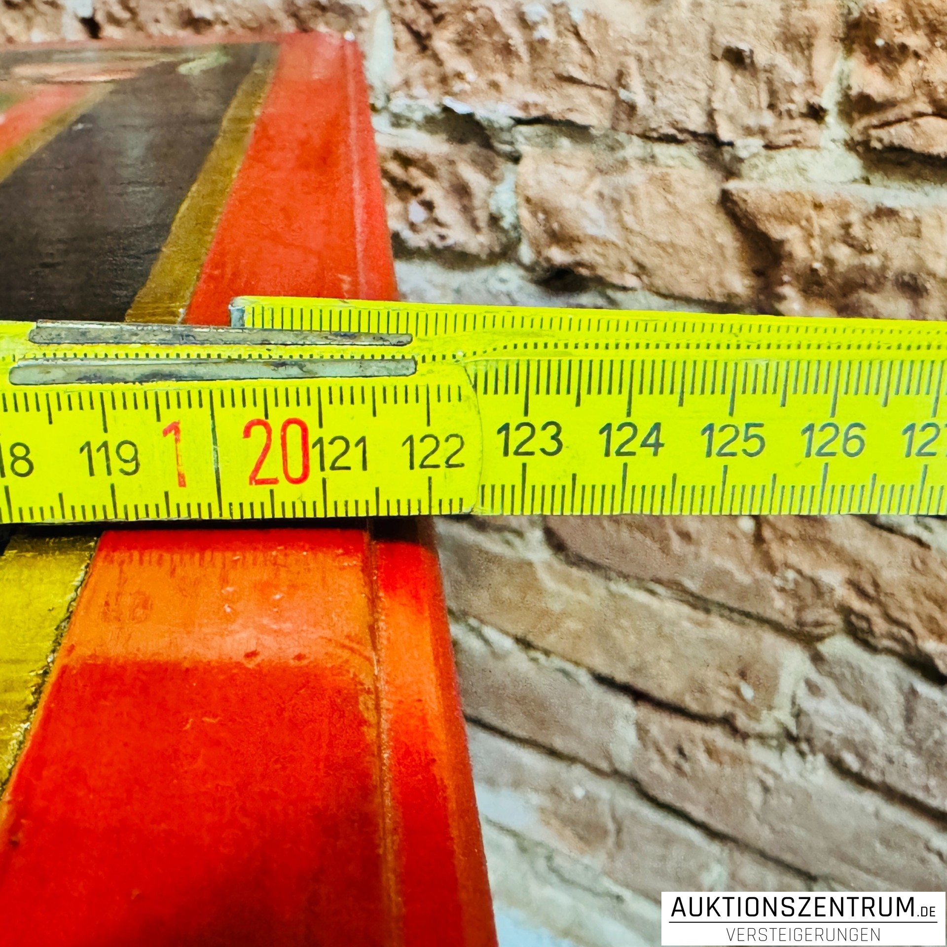 Material: Holz, Metallbeschläge, polychrome Malerei