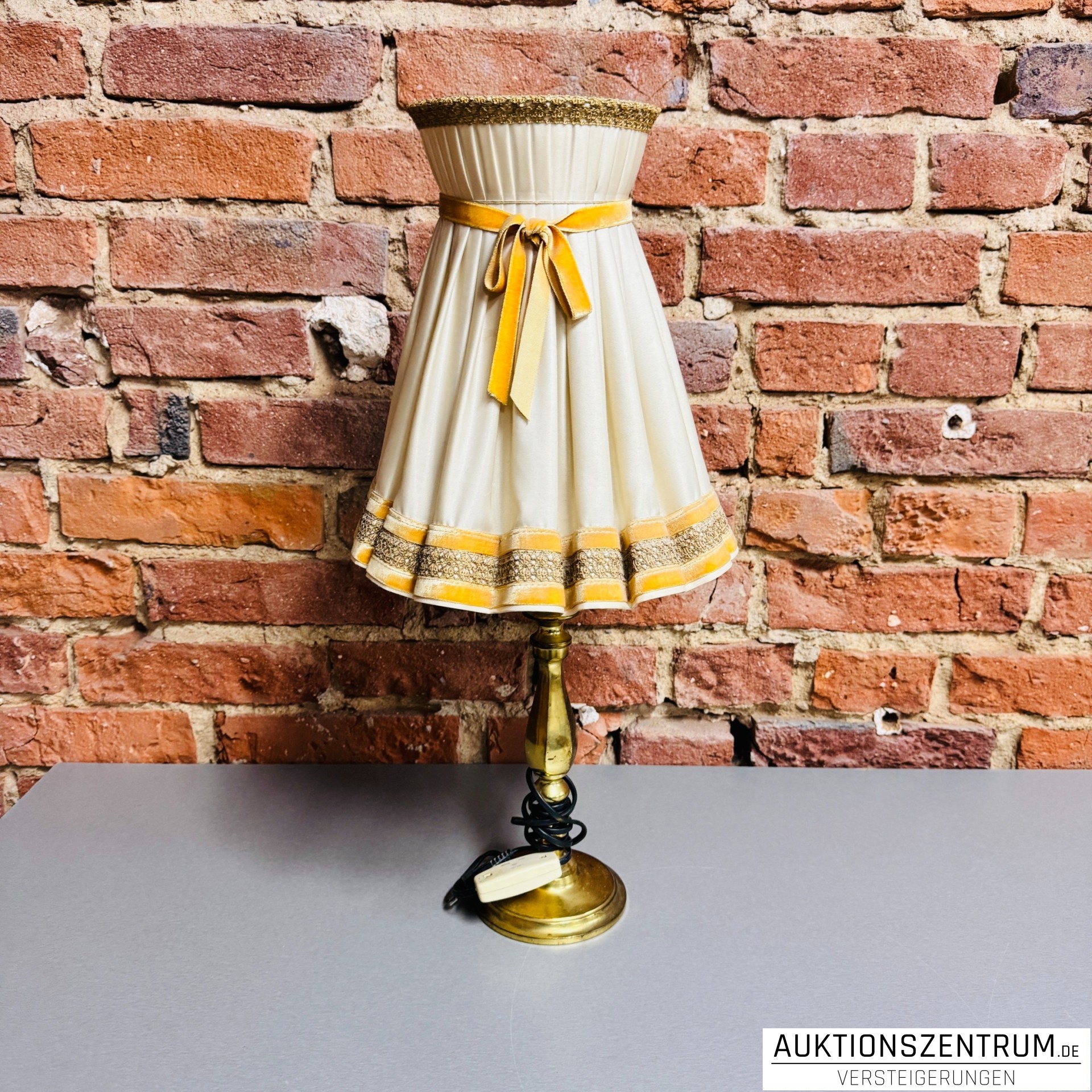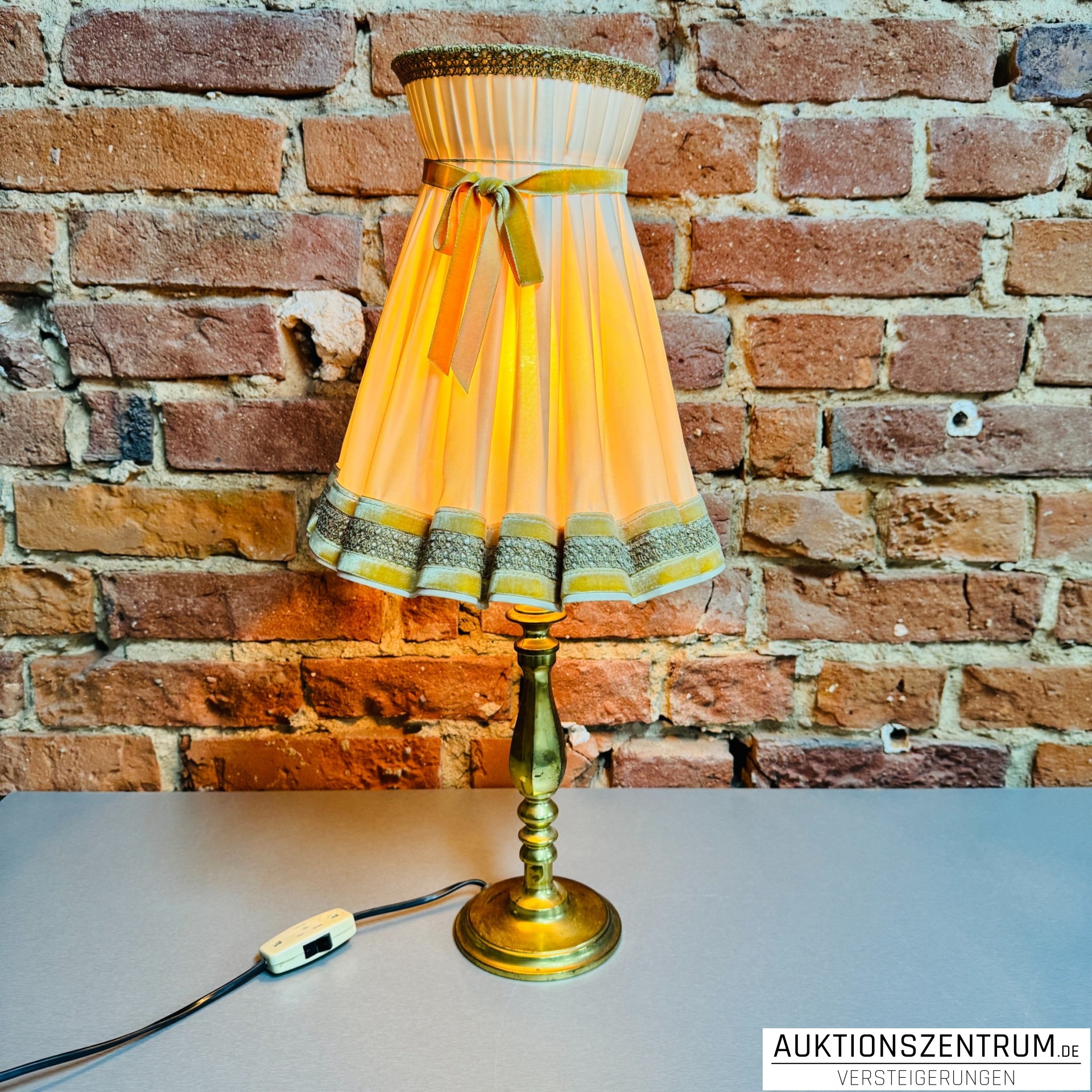 Lot 164 - Dekorative Tischlampe Messing mit Faltenstoffschirm 29x59cm