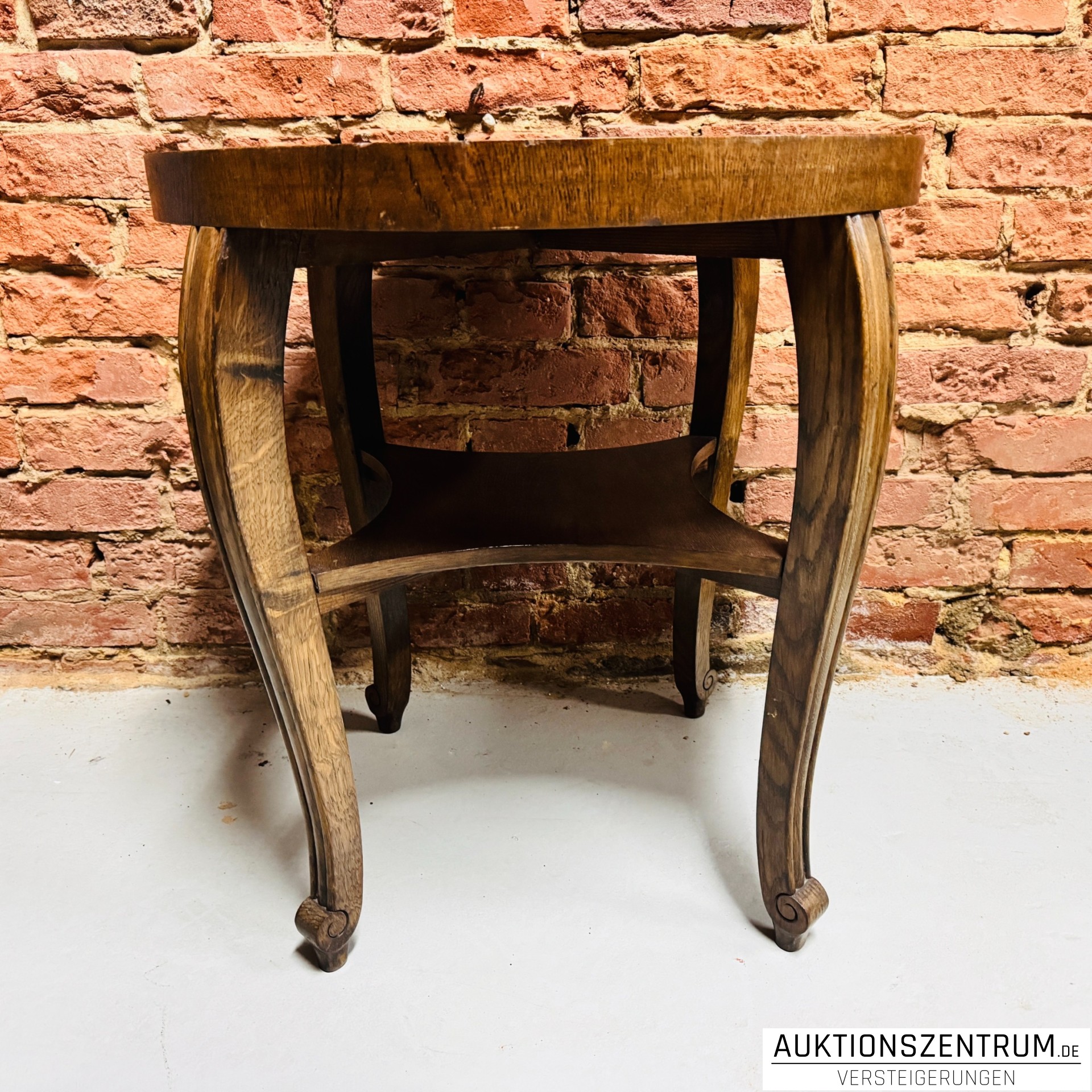Lot 165 - Runder Holz-Beistelltisch Intarsienplatte Massivholz 60x65 cm