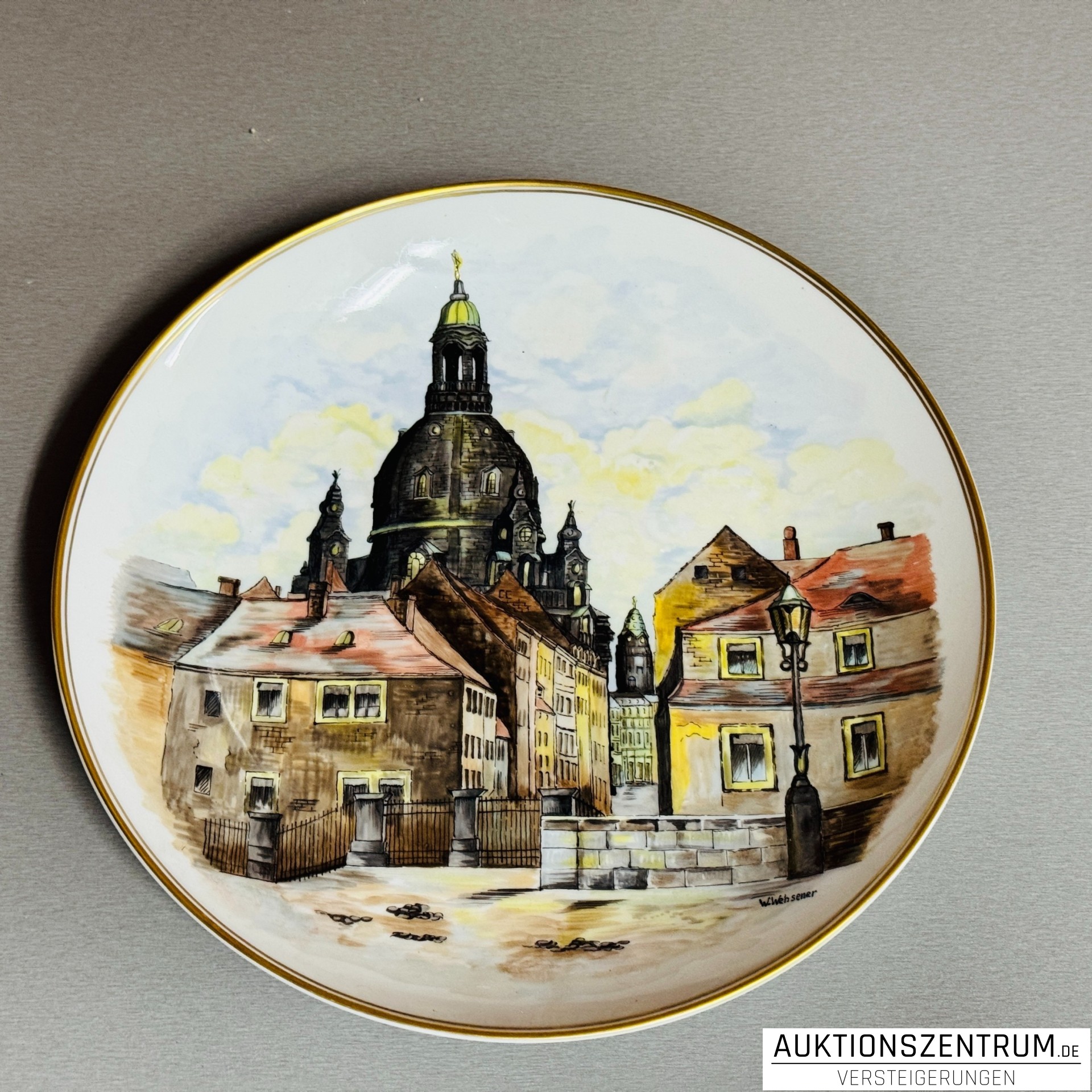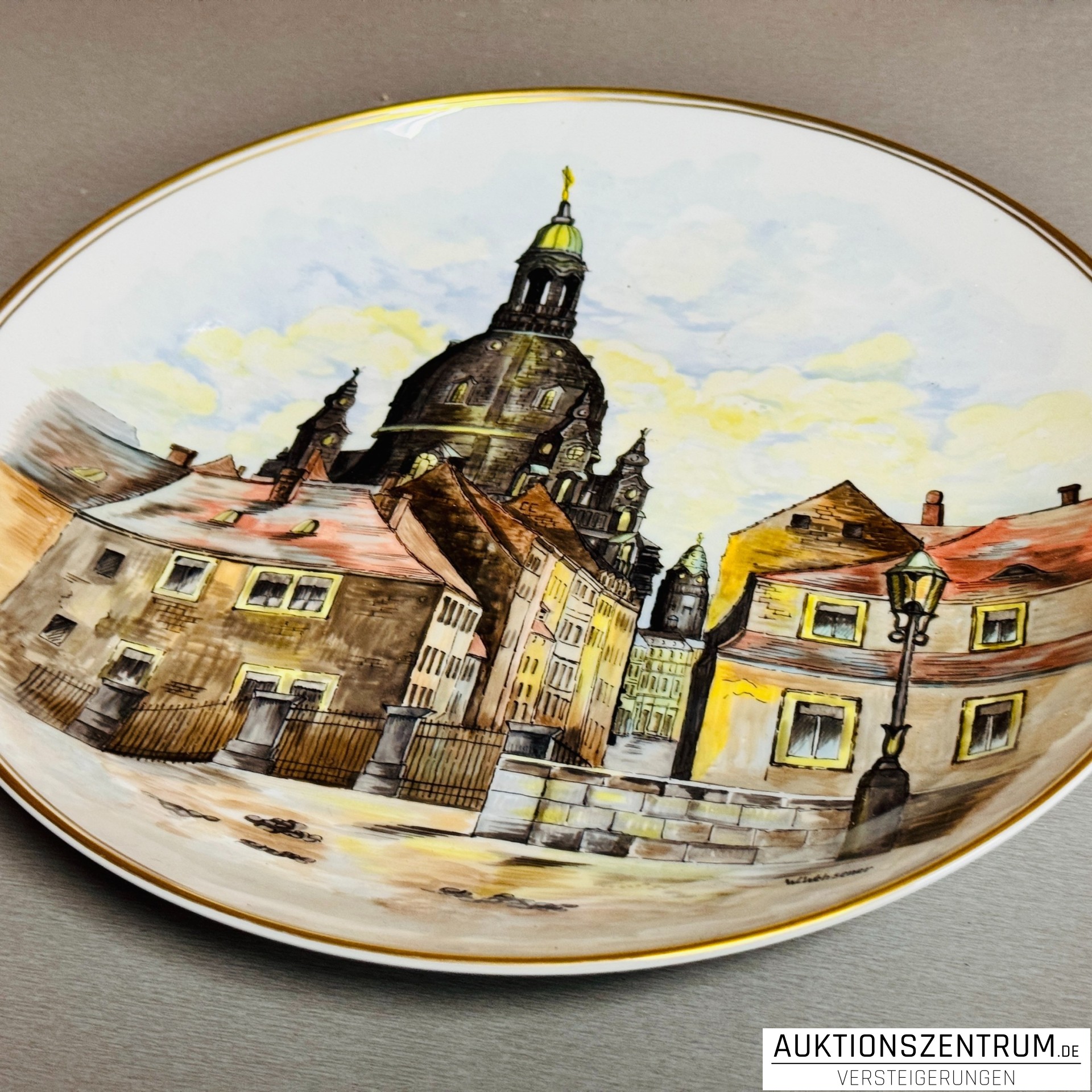 Lot 61 - Wandteller Frauenkirche bis 1945 Porzellan, RW Dresden Handmalerei DDR, Werner Wehsener