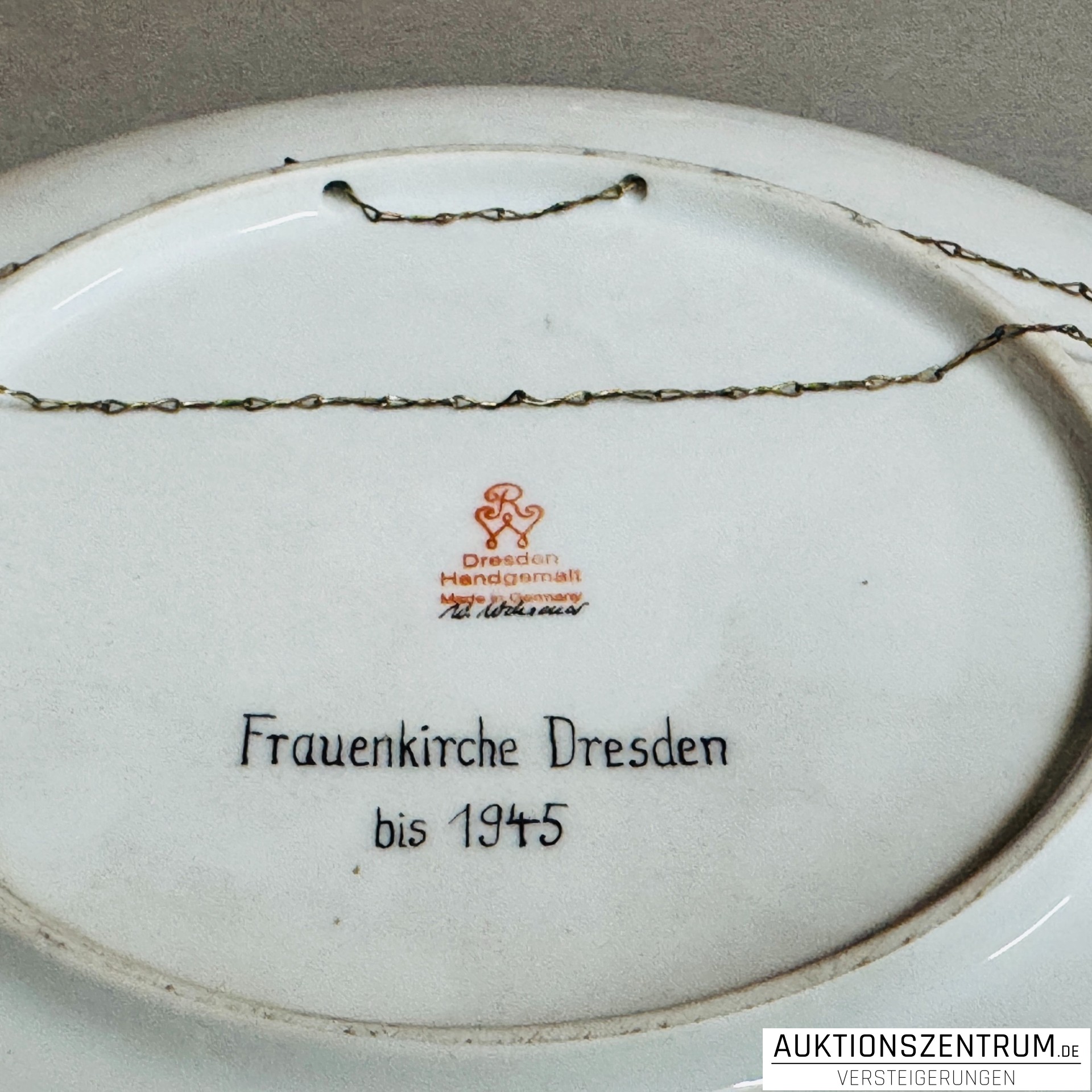 Wandteller Frauenkirche bis 1945 Porzellan, RW Dresden Handmalerei DDR, Werner Wehsener