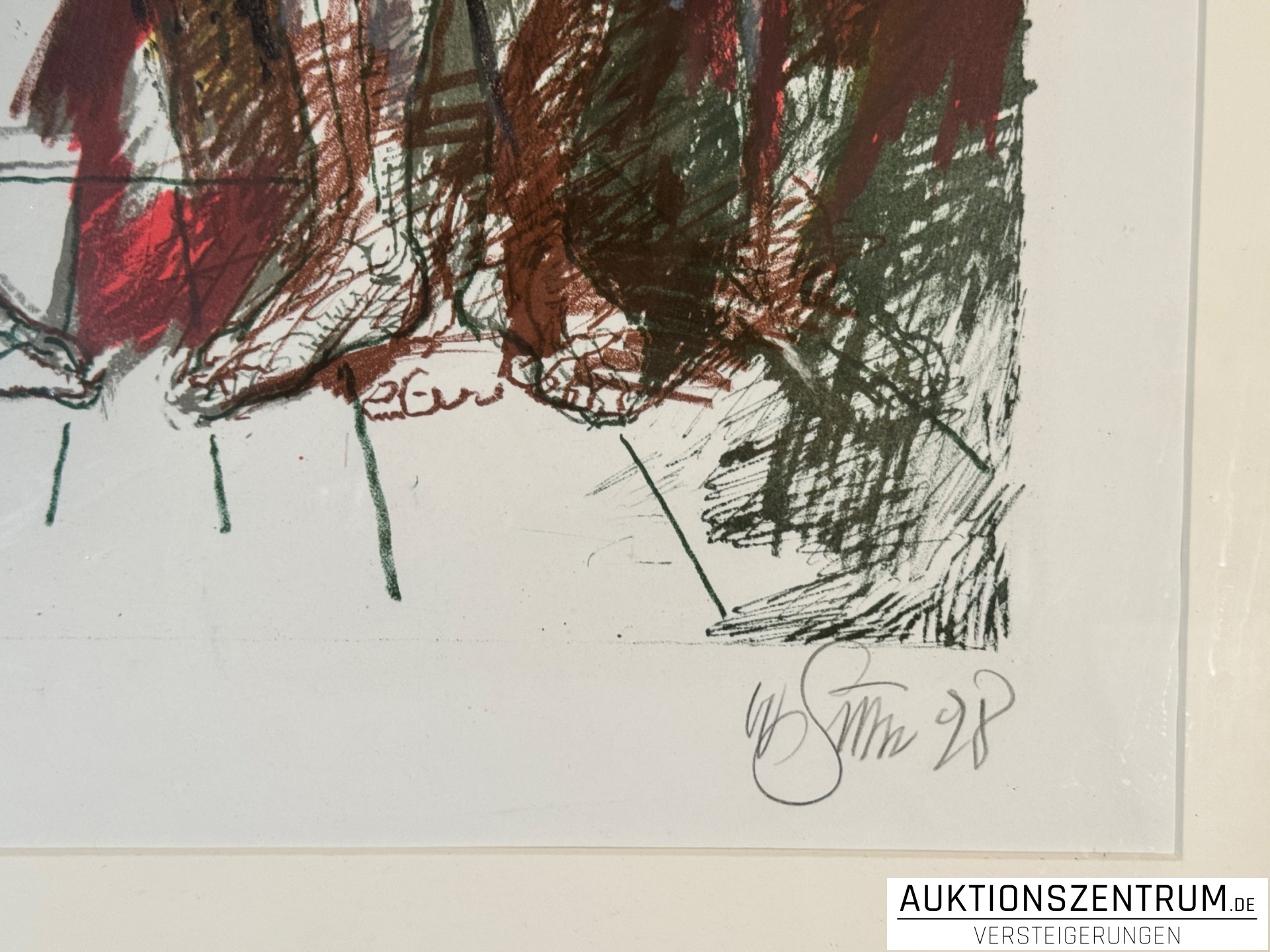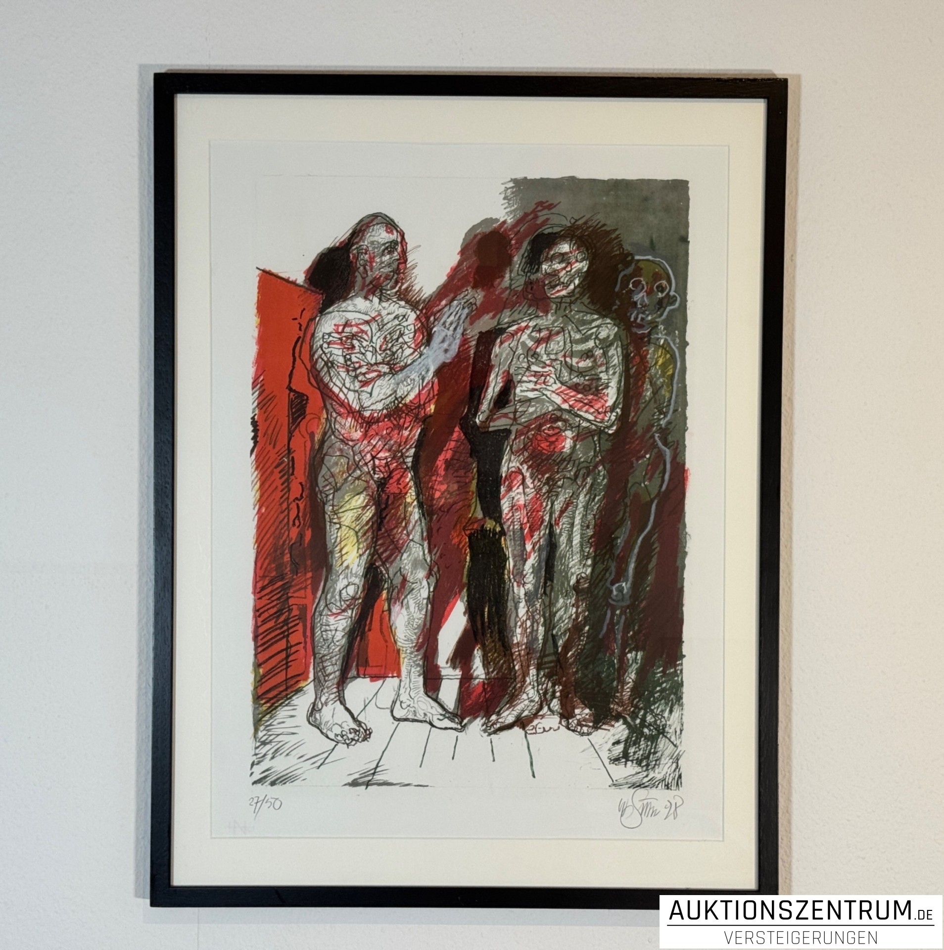 Farblithografie auf Papier, passepartouriert. Blatt im unteren Rand links mit Bleistift nummeriert „27/50“, rechts signiert und datiert „Willi Sitte 98“.