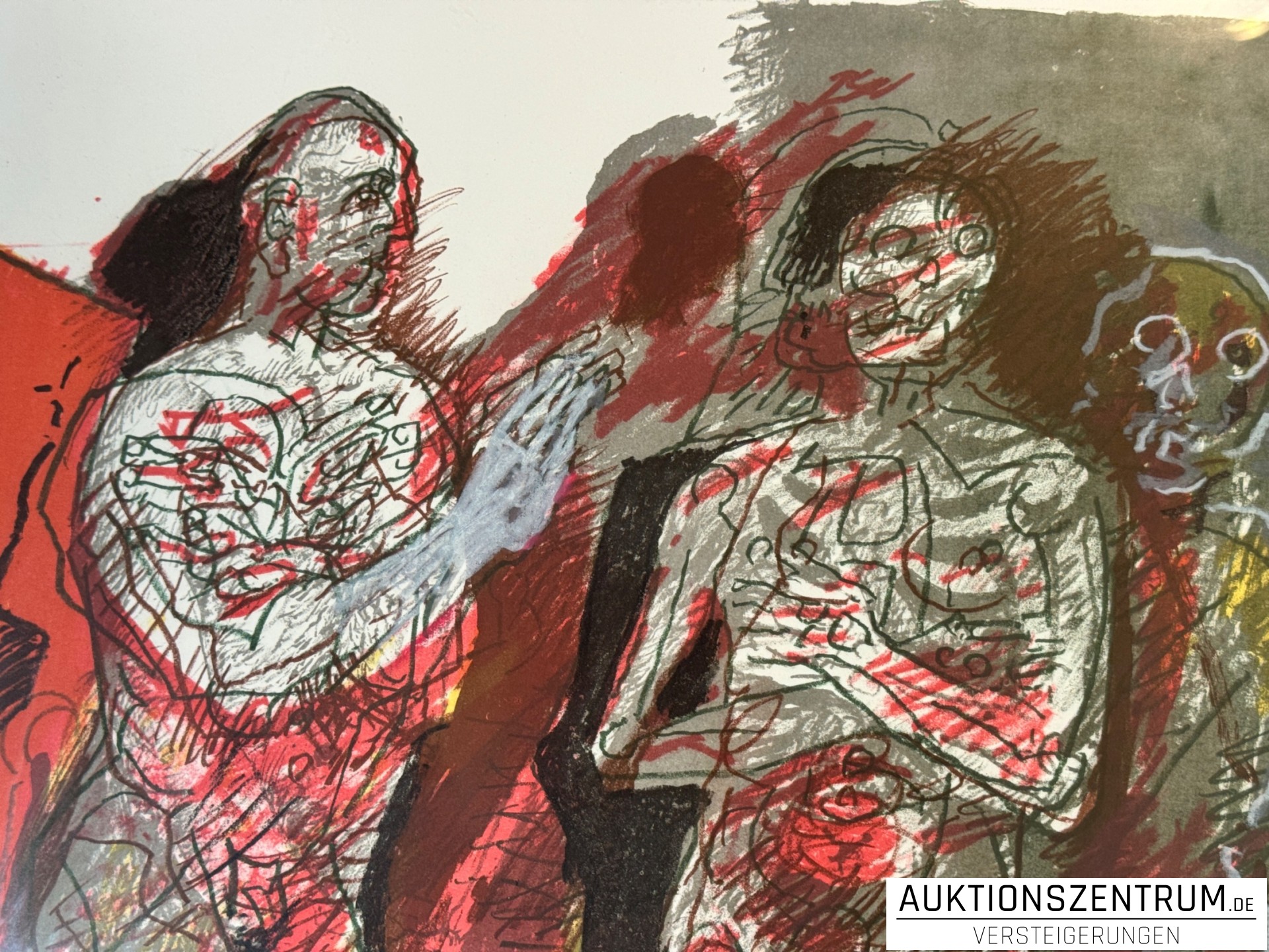 Lot 95 - Willi Sitte Farblithografie „Gespräch mit dem Tod“, 1998, 63 x 83 cm