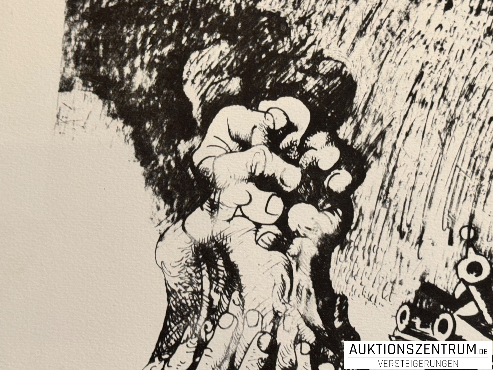 Willi Sitte Radierung „Rafft der Klasse Kraft in eine Faust“ 1977, 36 x 48cm