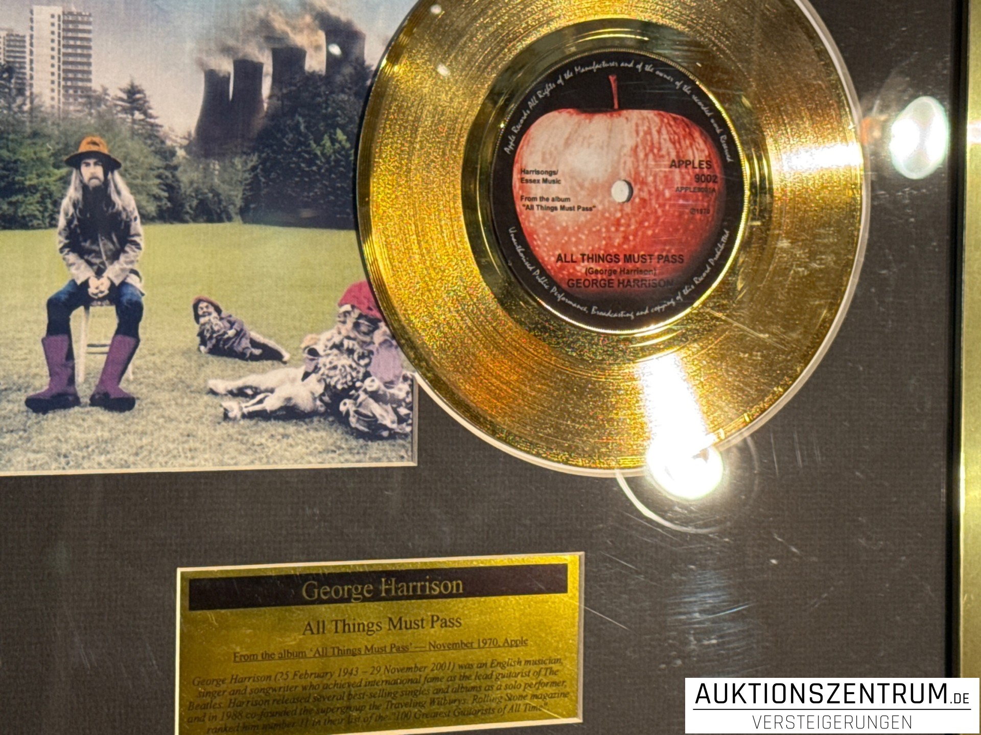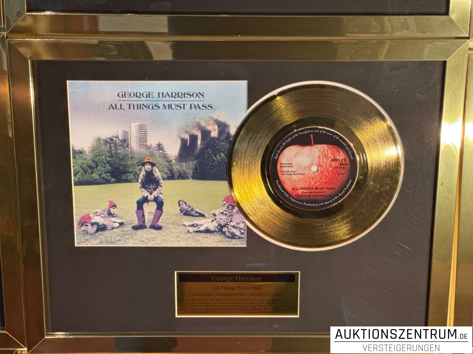 Lot 191 - George Harrison Gold Award Display Single: All Things Must Pass, Apple Vinyl