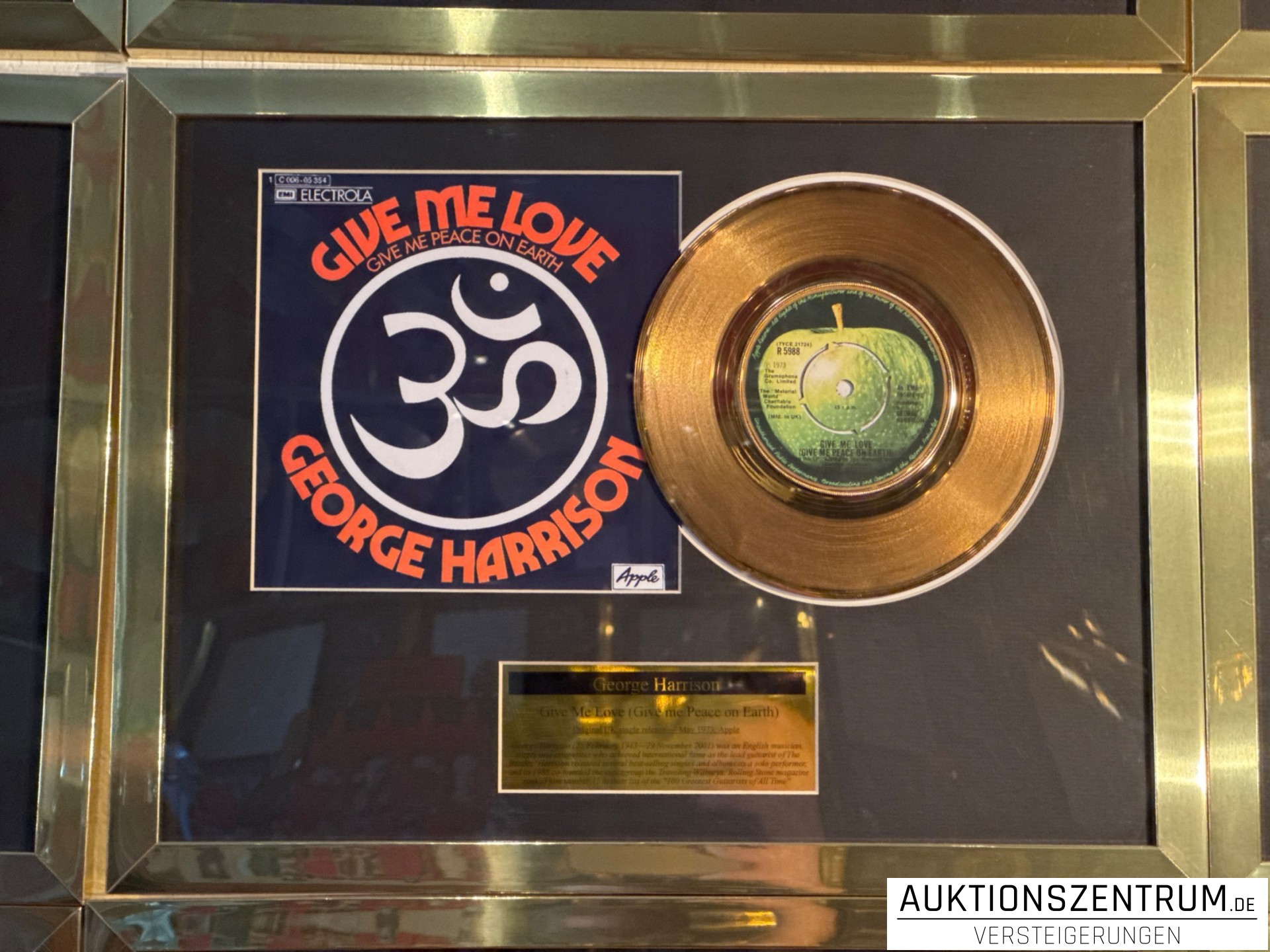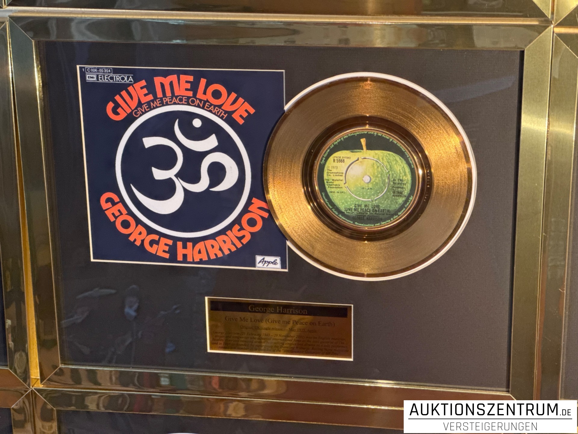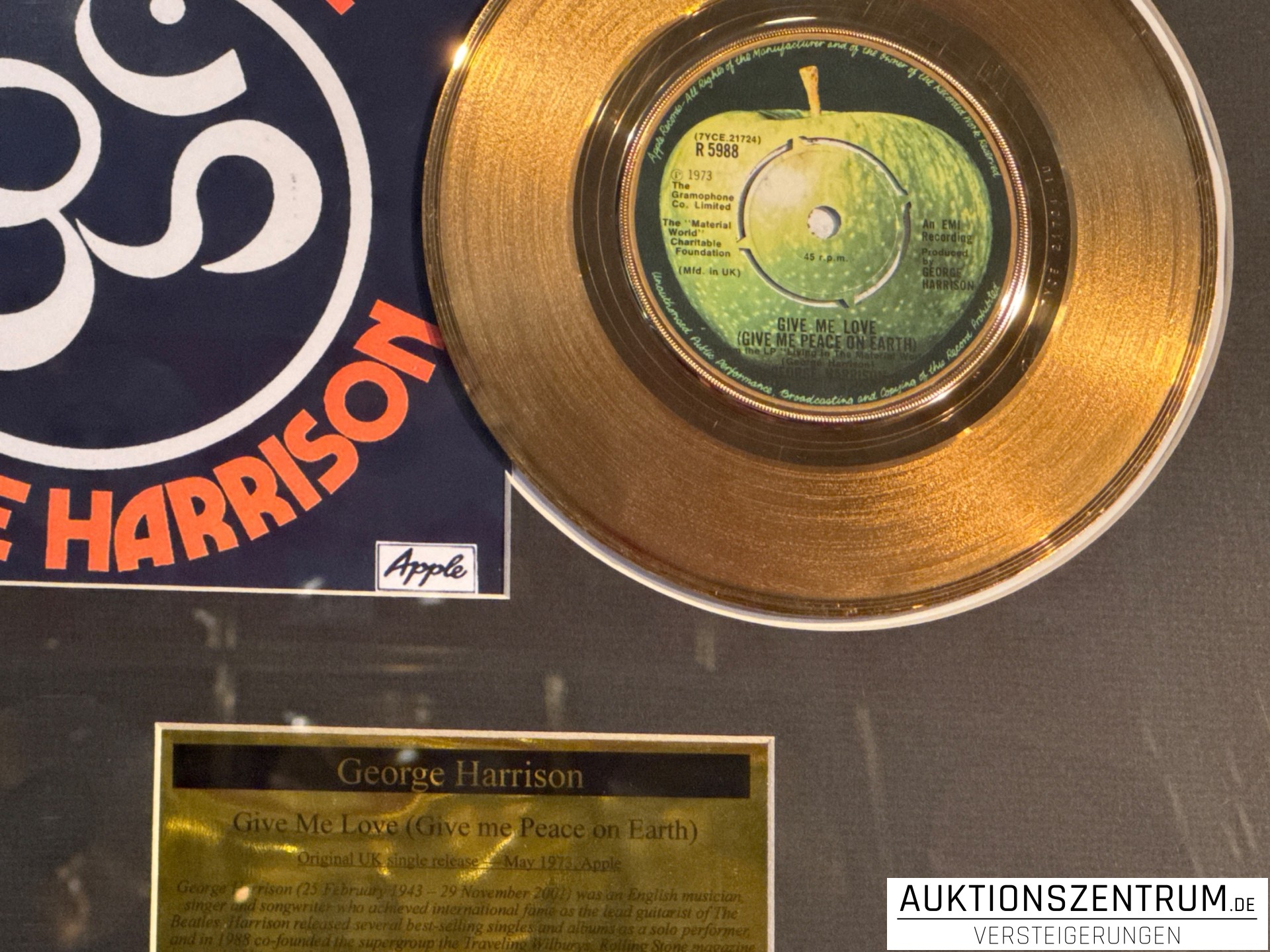 Lot 190 - George Harrison Gold Award Display Single: Give Me Love (Give me Peace on Earth), Apple Vinyl