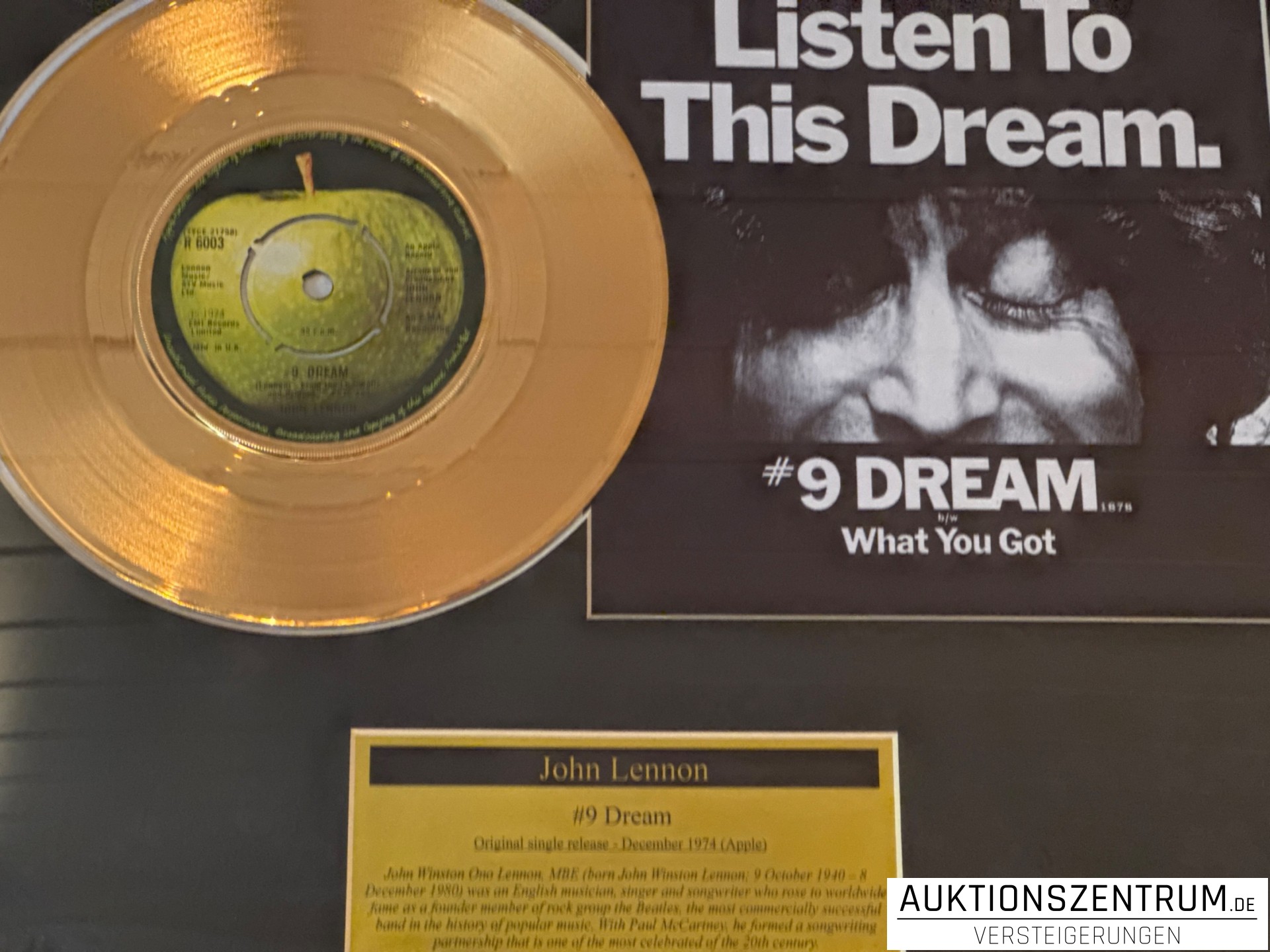 Lot 167 - John Lennon Gold Award Display Single: #9 Dream, Apple Vinyl