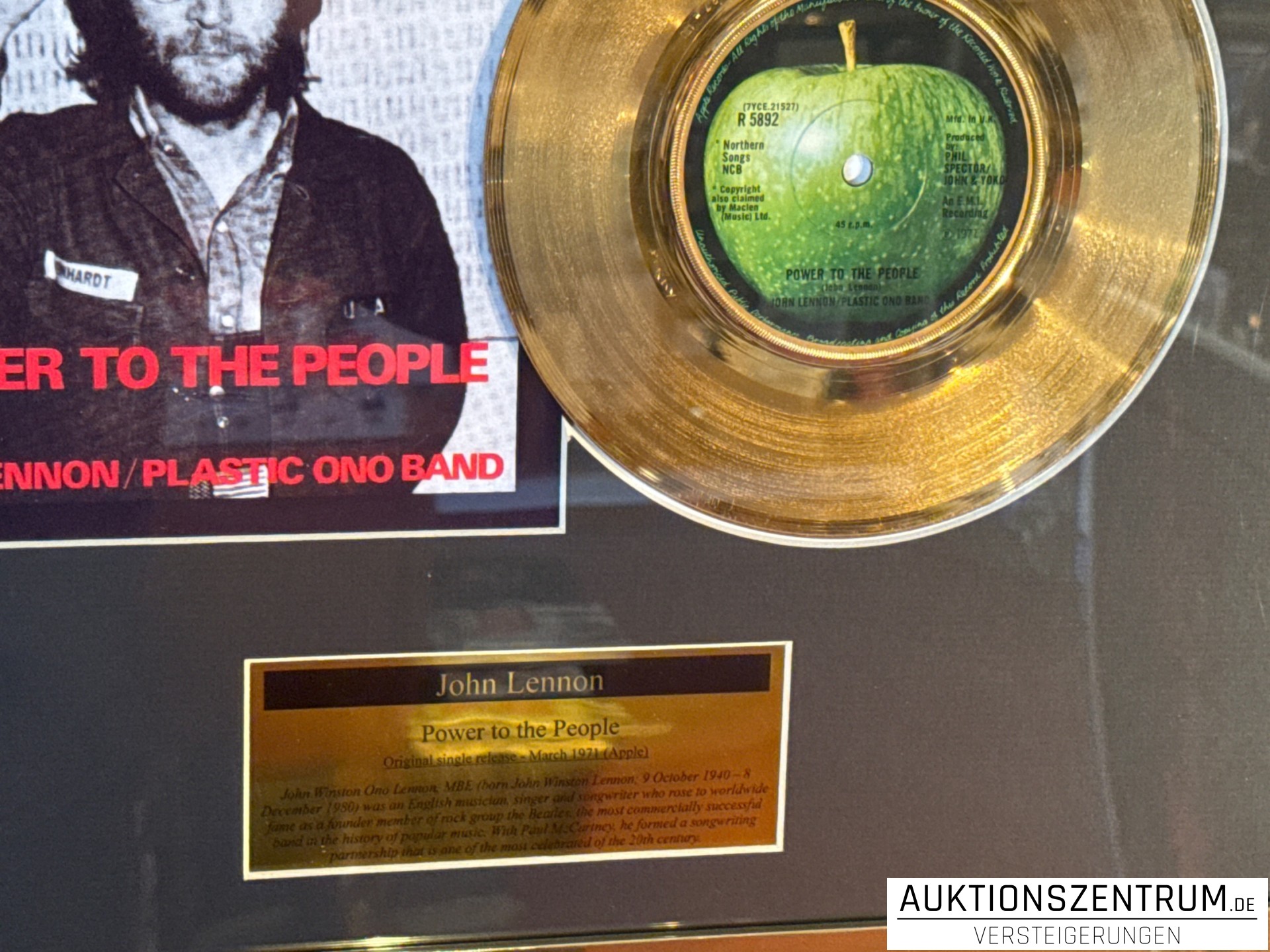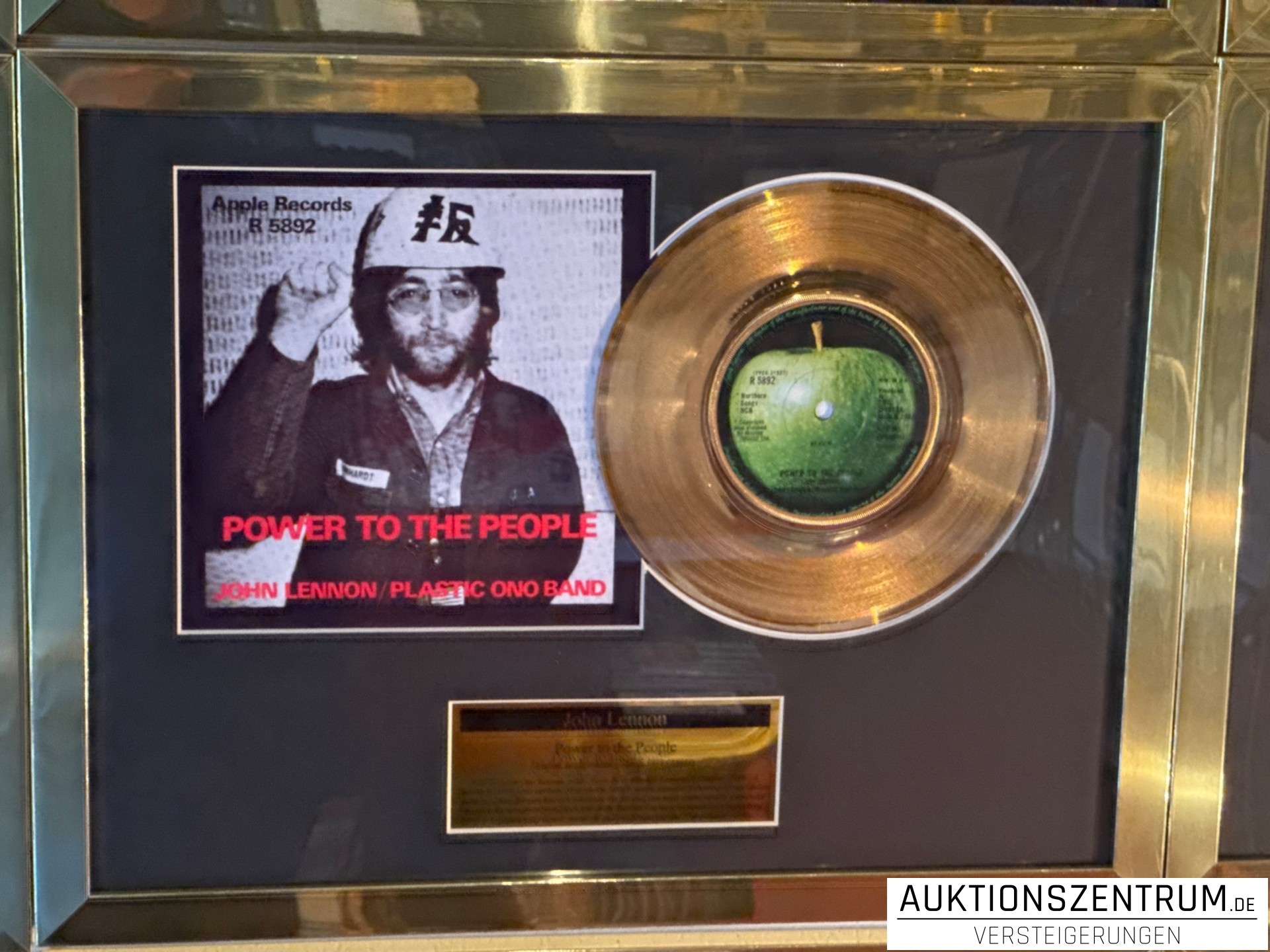 Lot 172 - John Lennon Gold Award Display Single: Power To The People, Apple Vinyl
