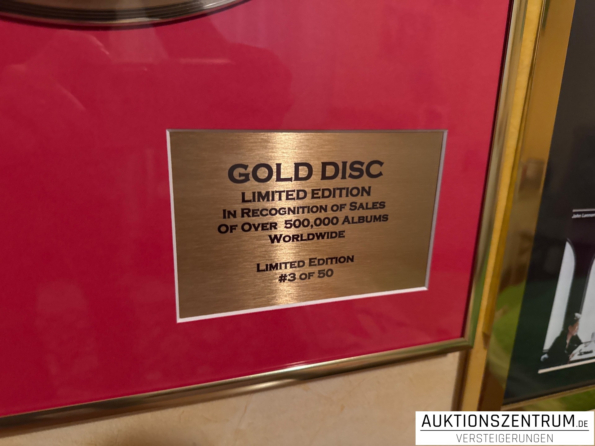 Lot 215 - John Lennon Gold Disc Award Display 3/50, Plastic Ono Band, Limited Edition (LP)