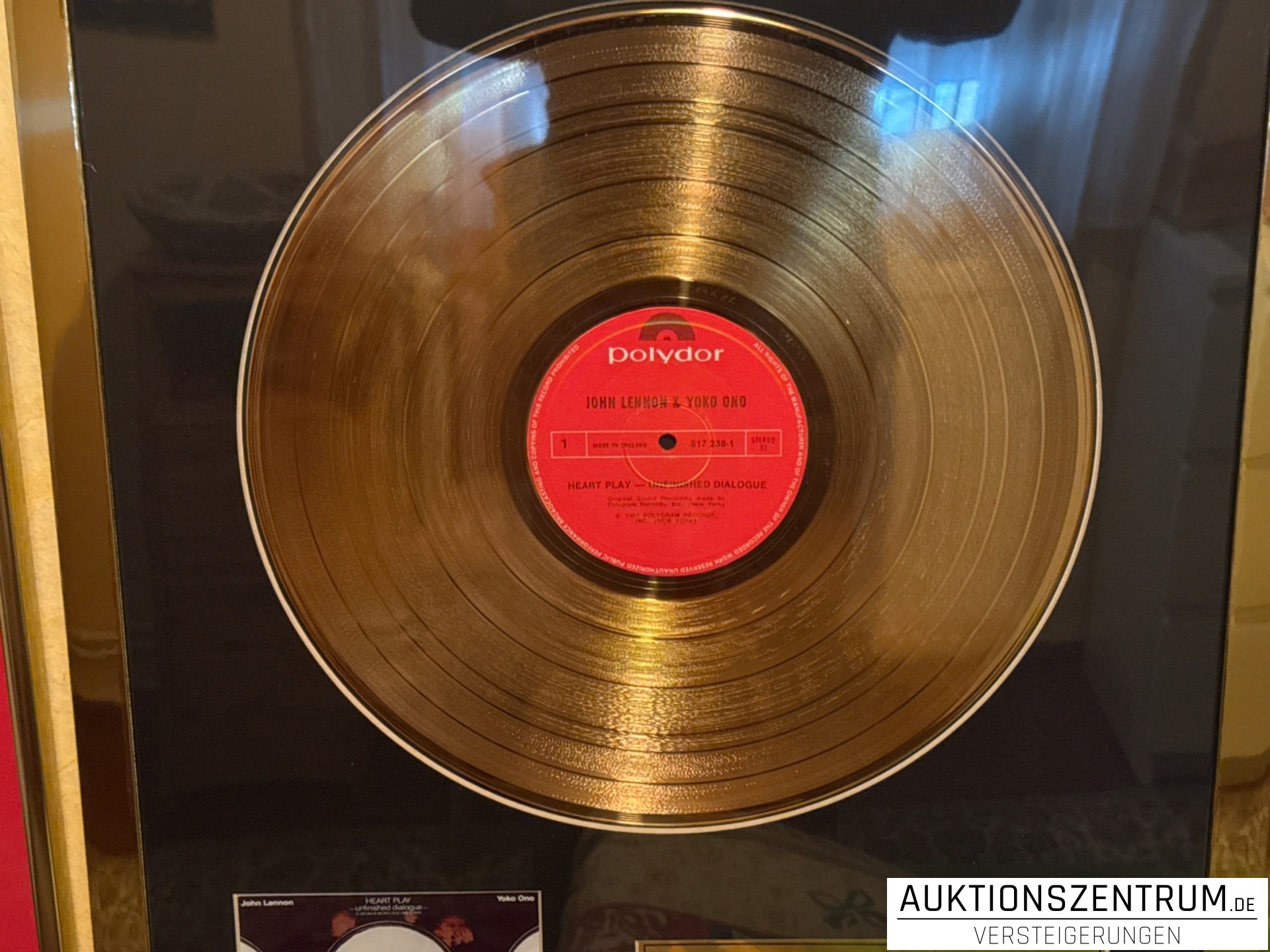Lot 210 - John Lennon, Heart Play, Unfinished Dialogue, Polydor, 24K Gold Plated Disc: LP Award Display