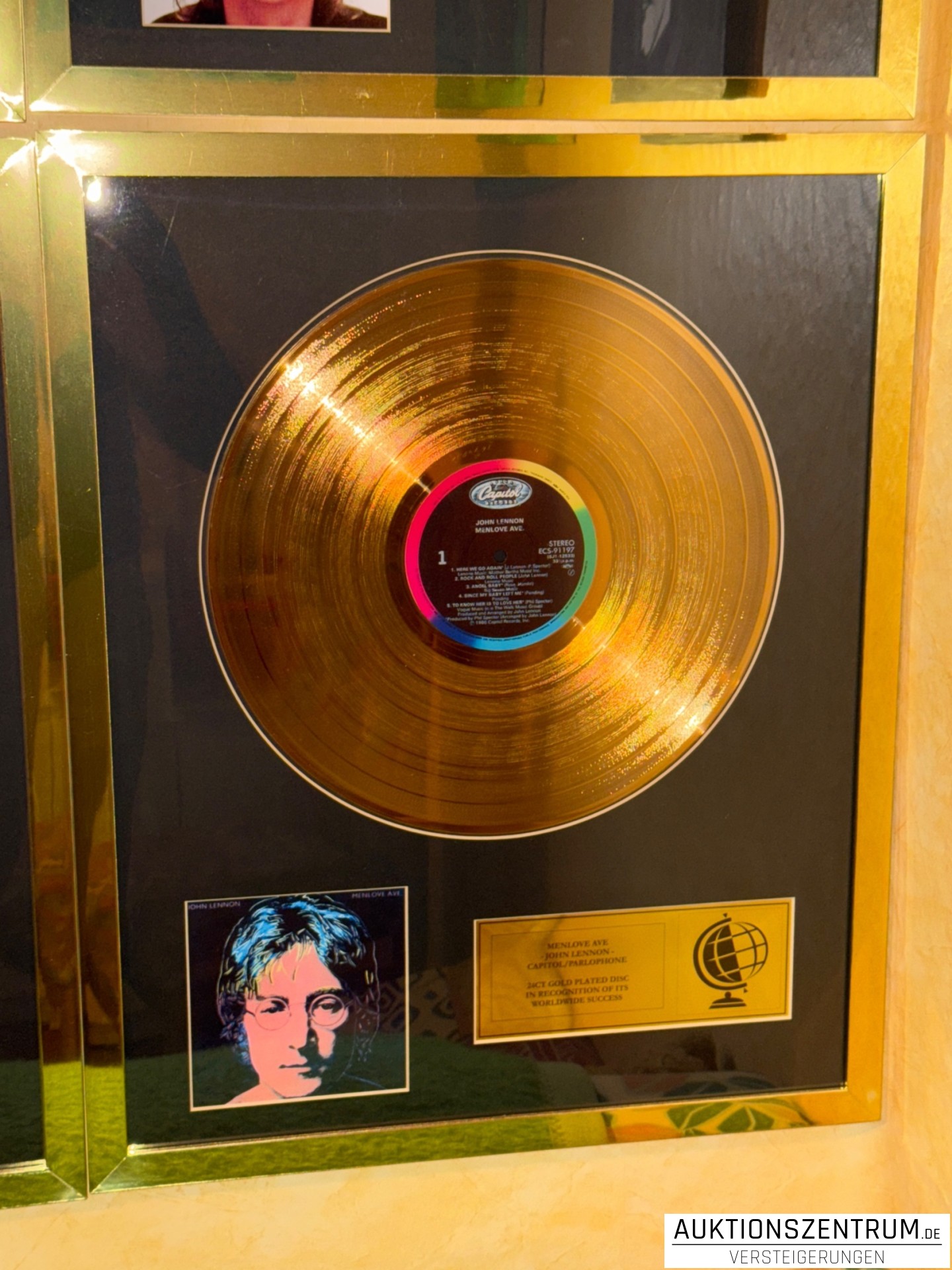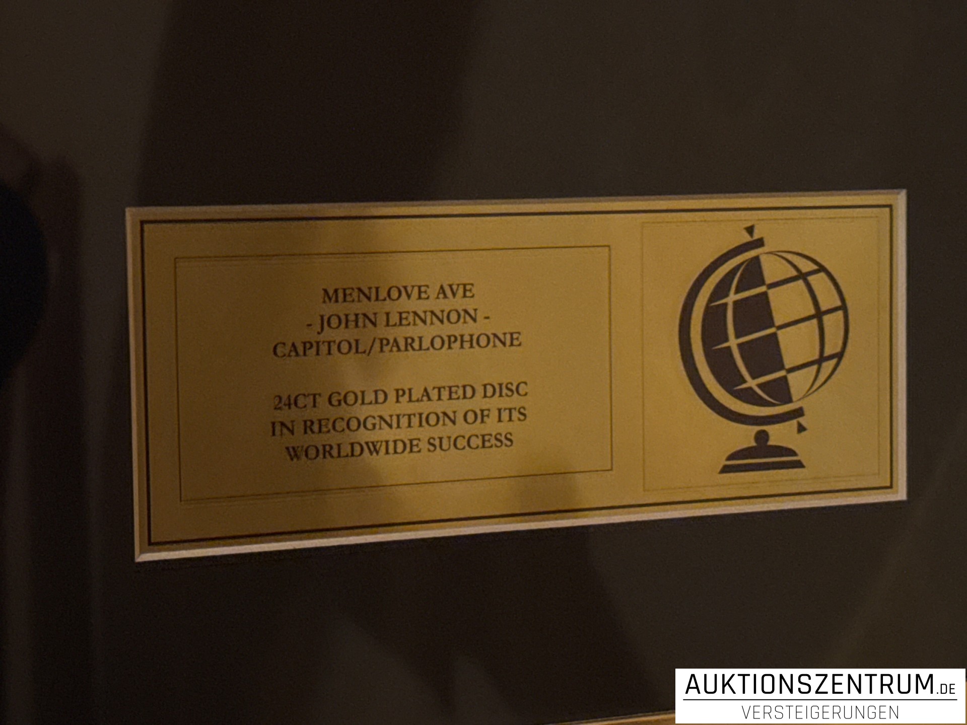 Lot 214 - John Lennon, Menlove Ave, Capitol, 24K Gold Plated Disc: LP Award Display