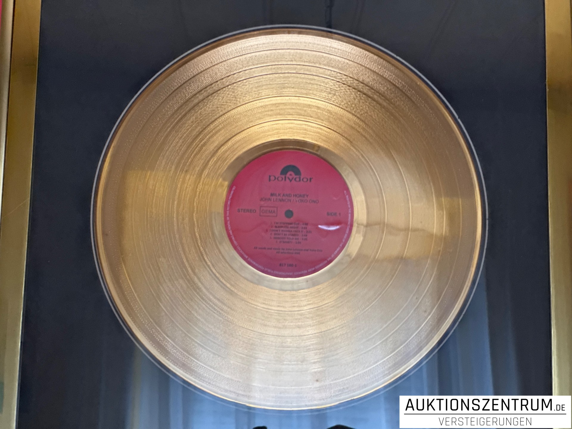 Lot 205 - John Lennon, Milk and Honey, Polydor, 24K Gold Plated Disc: LP Award Display