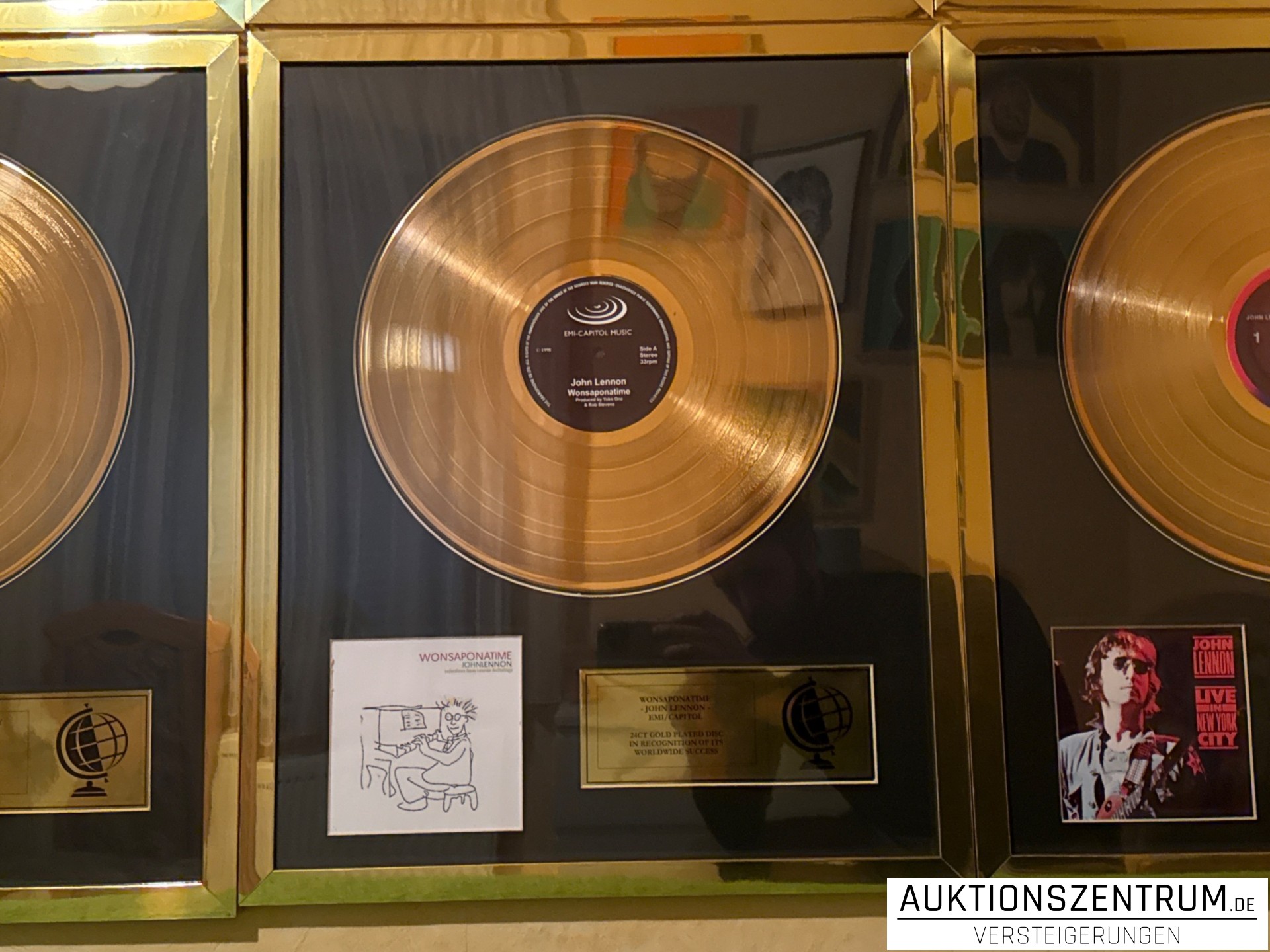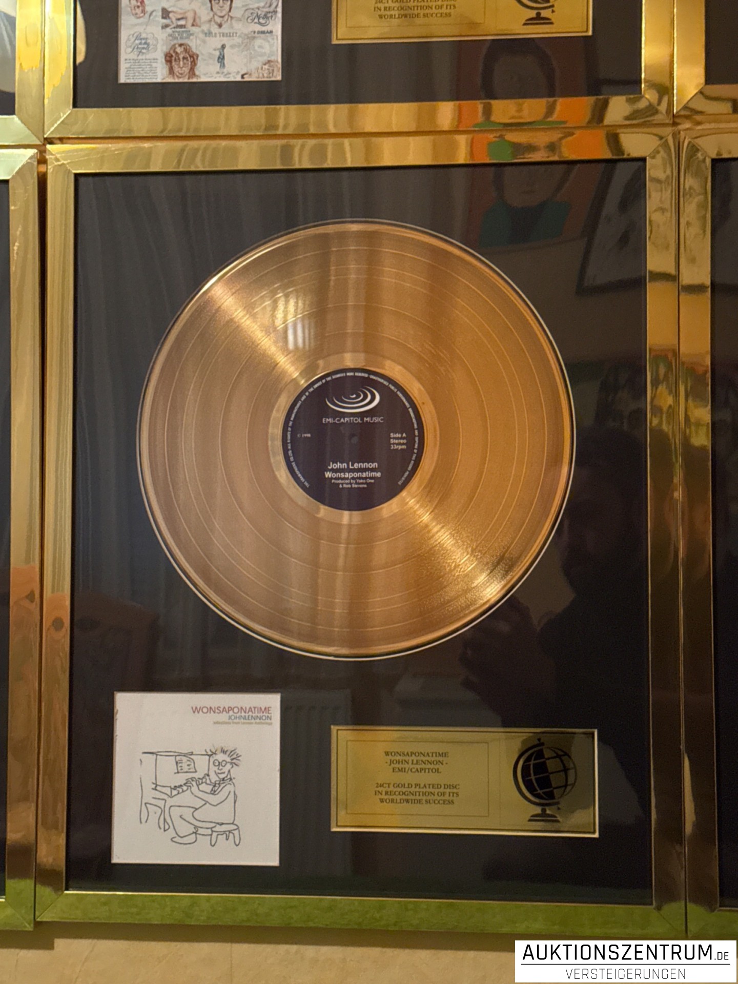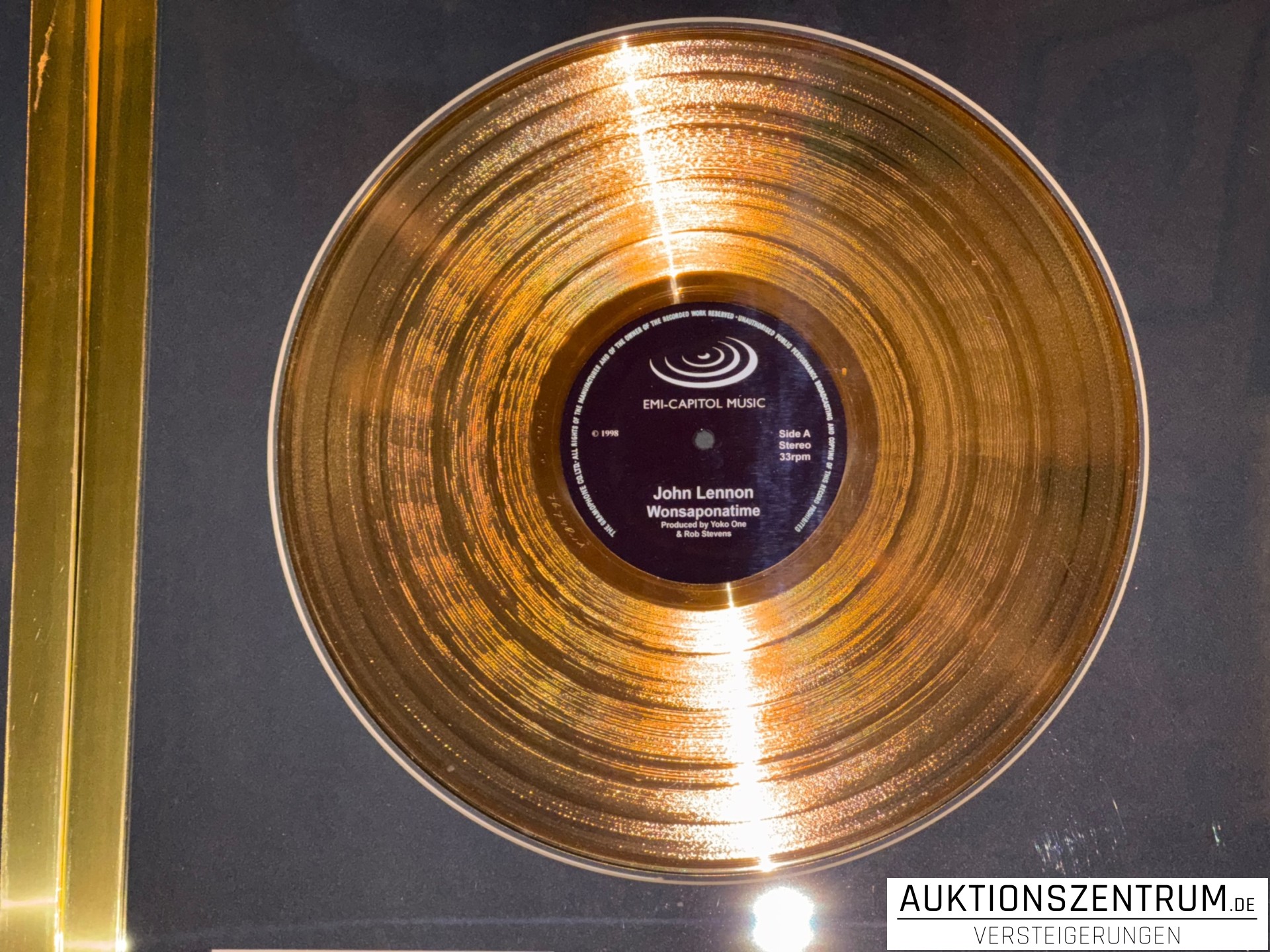 Lot 212 - John Lennon, Wonsaponatime, EMI / Capitol, 24K Gold Plated Disc: LP Award Display