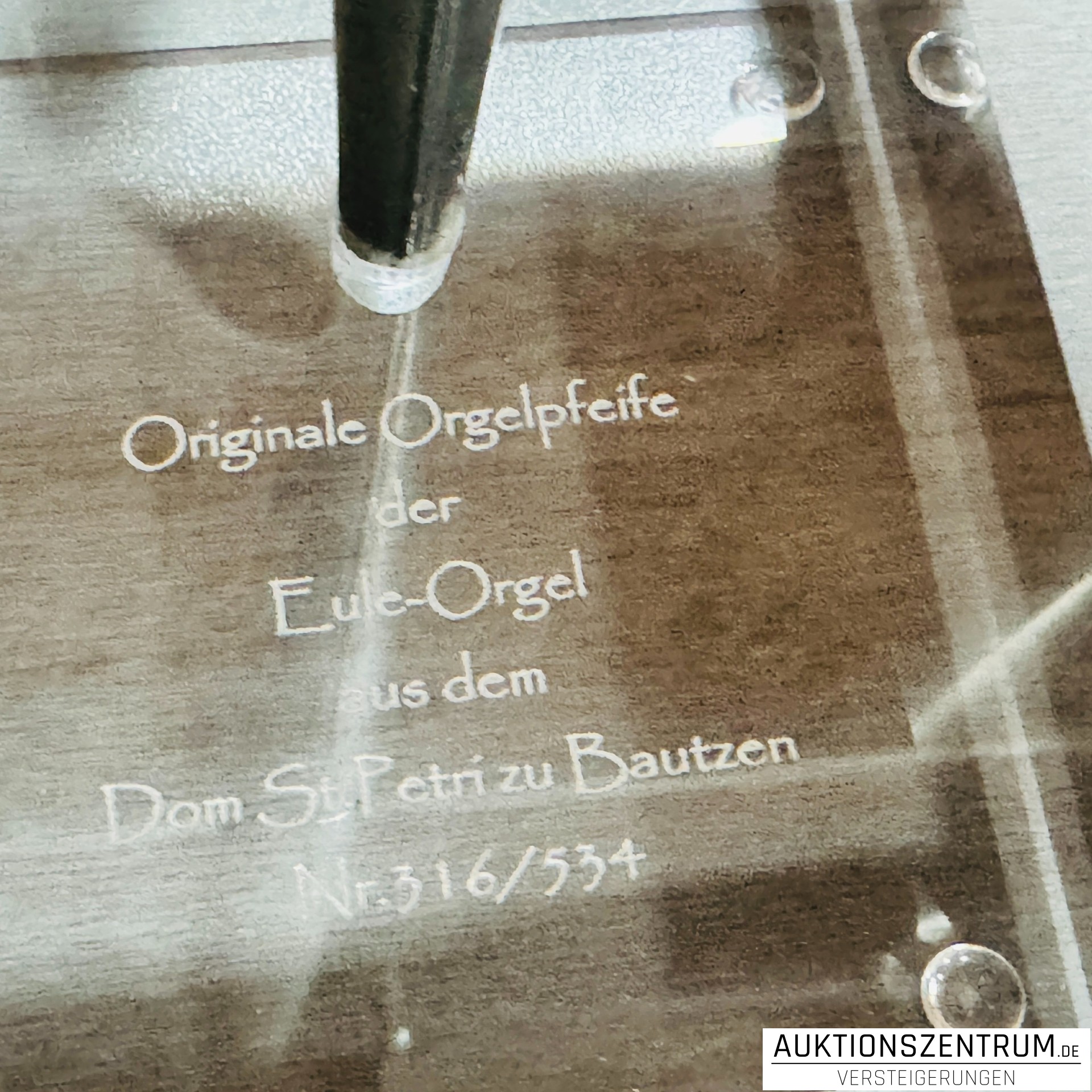 „Originale Orgelpfeife der Eule-Orgel aus dem Dom St. Petri zu Bautzen Nr. 316/534“.