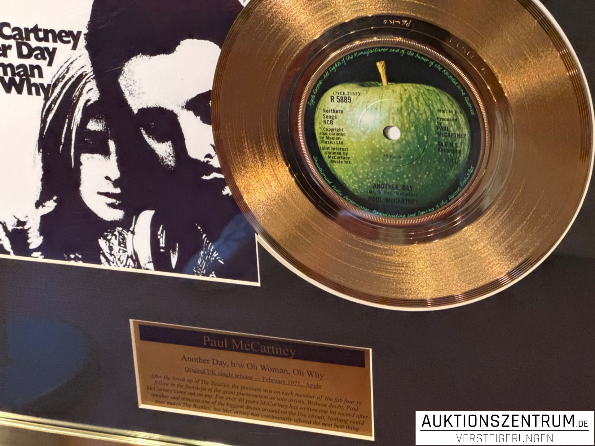 Lot 181 - Paul McCartney Gold Award Display Single: Another Day, b/w Oh Woman, Oh Why, Apple Vinyl