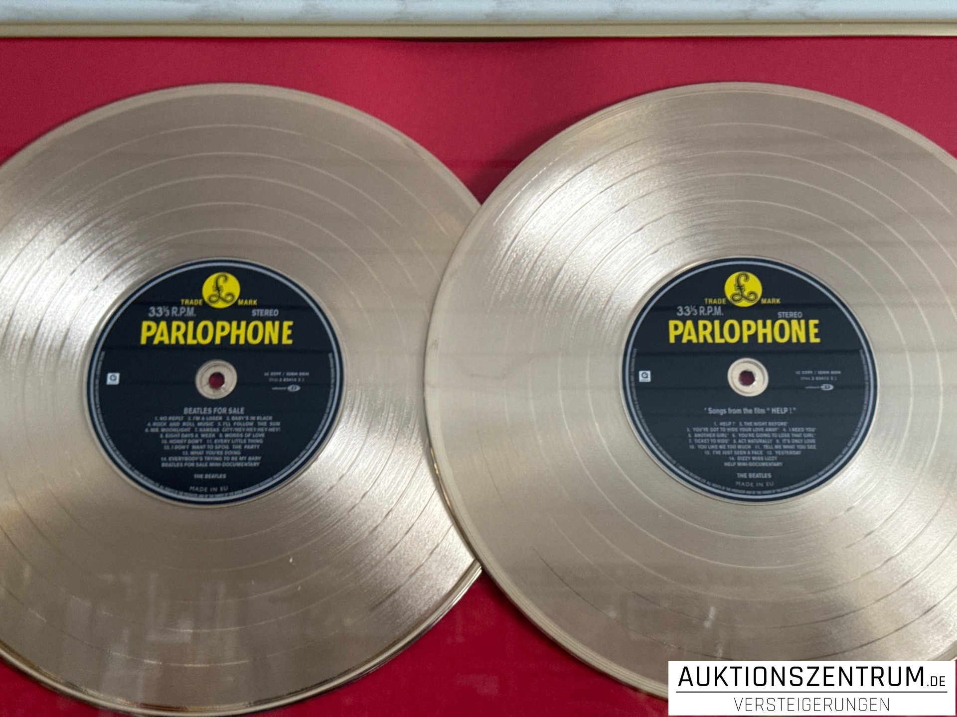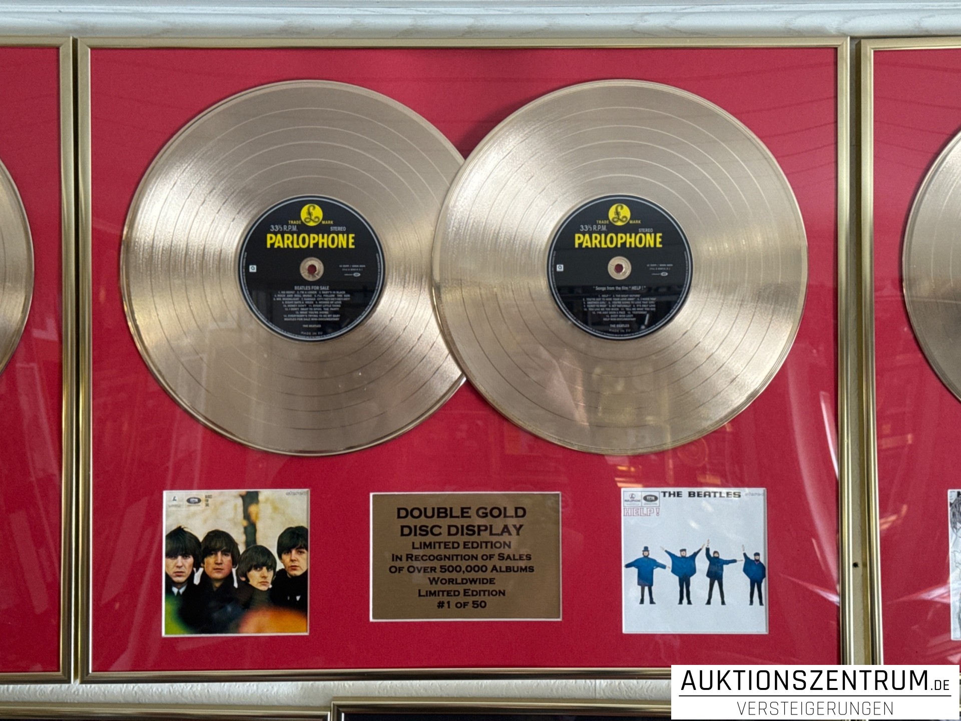 Lot 252 - The Beatles Double-Gold Disc Vinyl Display 1/50 - Beatles for Sale / Help! Limited Edition LP
