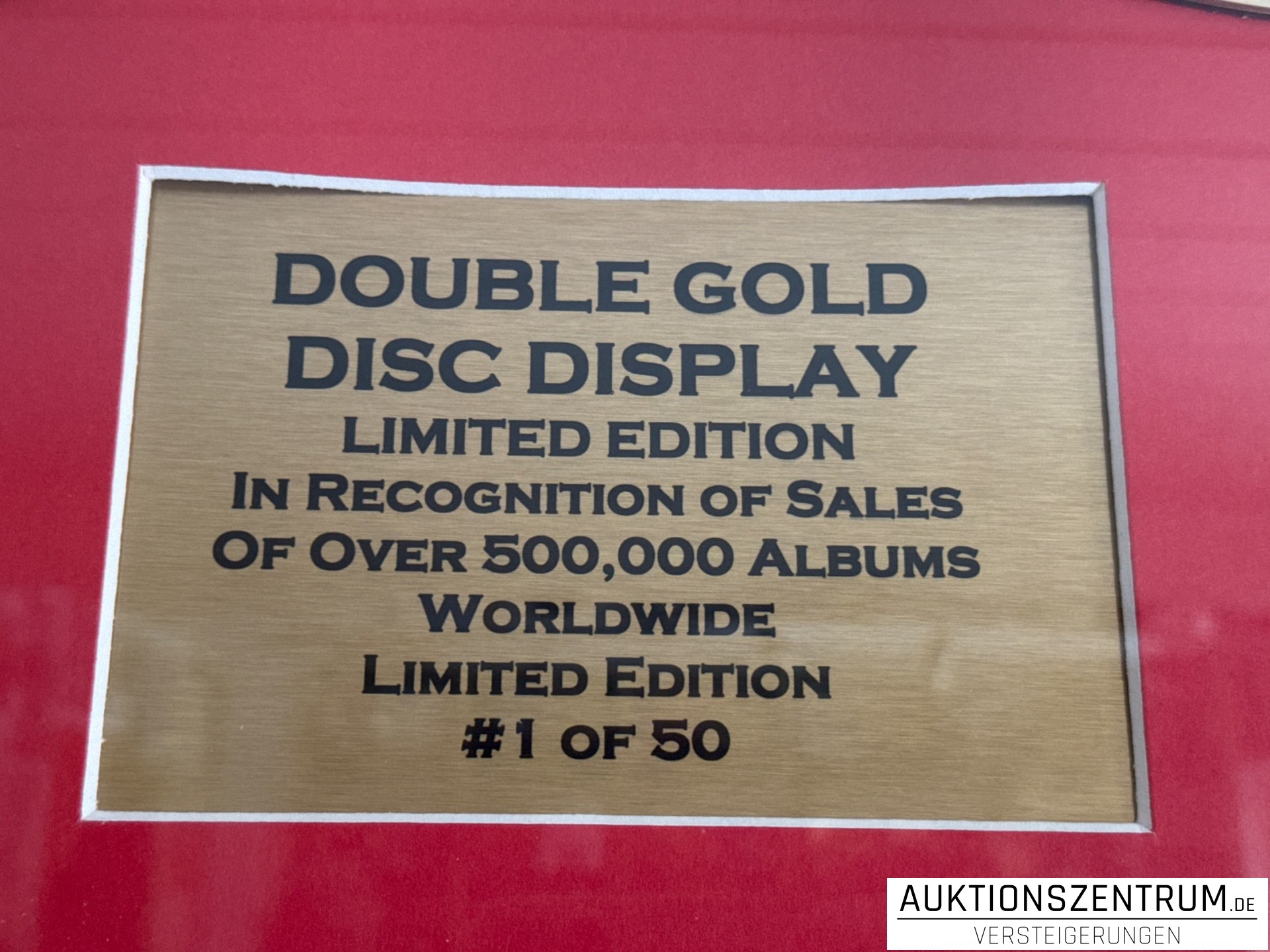 Die edle Präsentation im Goldrahmen mit rotem Passepartout ist besonders dekorativ und ideal für Sammler geeignet.