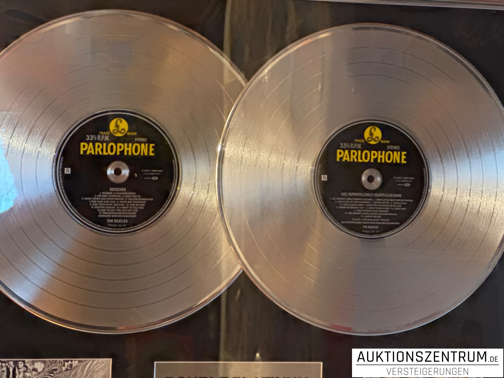 Lot 60 - The Beatles Double-Platin Vinyl Award Display 1/50 - Revolver / Sgt. Pepper`s Limited Edition