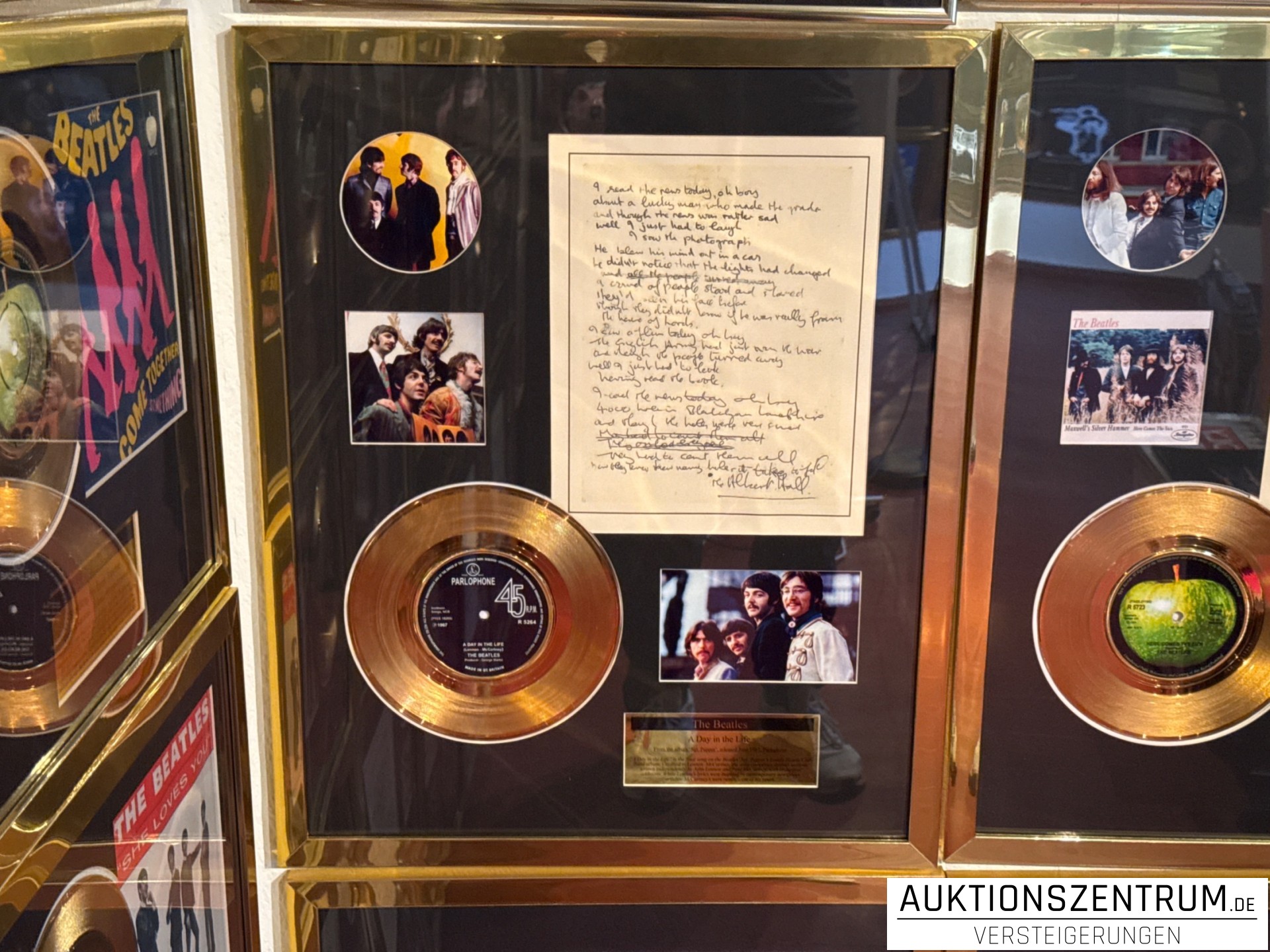 Gerahmte Gold-Award-Gedenkausgabe mit Liedtext zur legendären Single der Beatles.