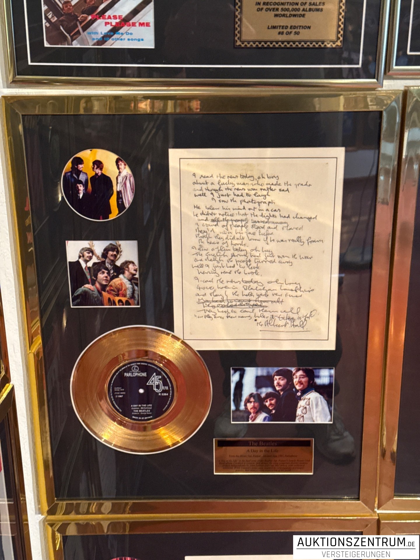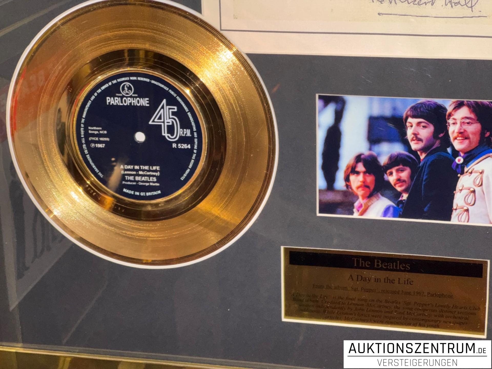 Lot 19 - The Beatles Gold Award Display Nr.1 Hits: A Day In My Life, Parlophone Vinyl