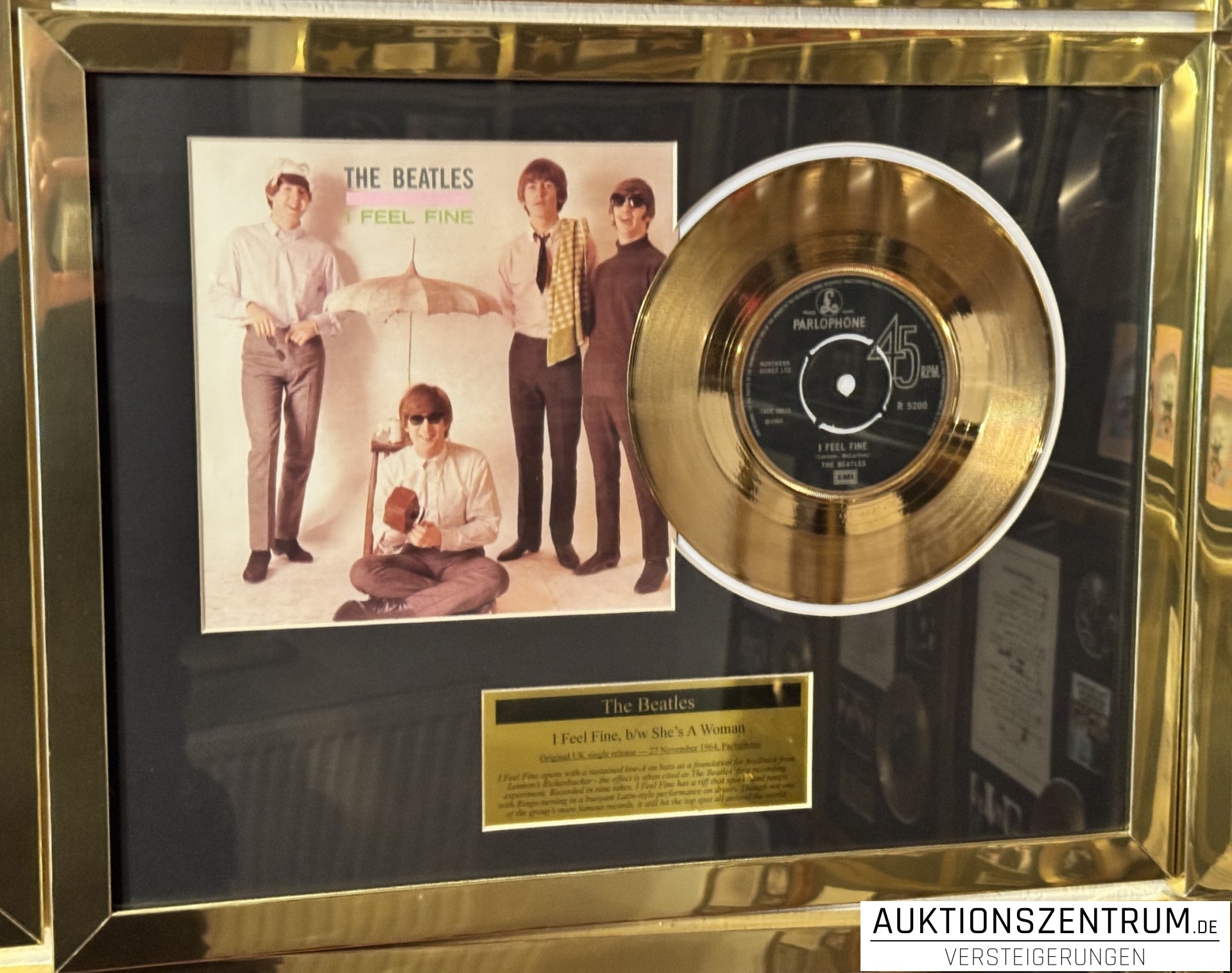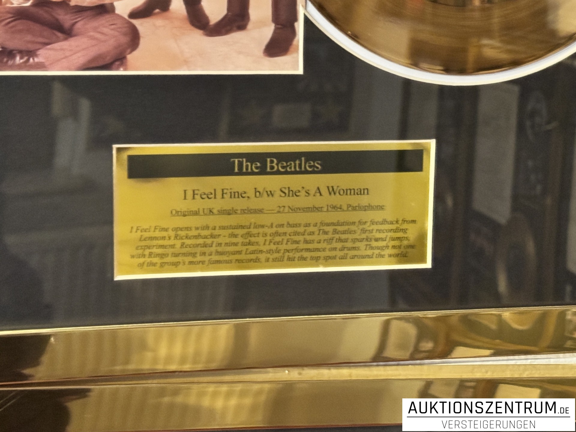 Lot 102 - The Beatles Gold Award Display Nr. 1 Hits: I Feel Fine / She's A Woman, Parlophone Vinyl