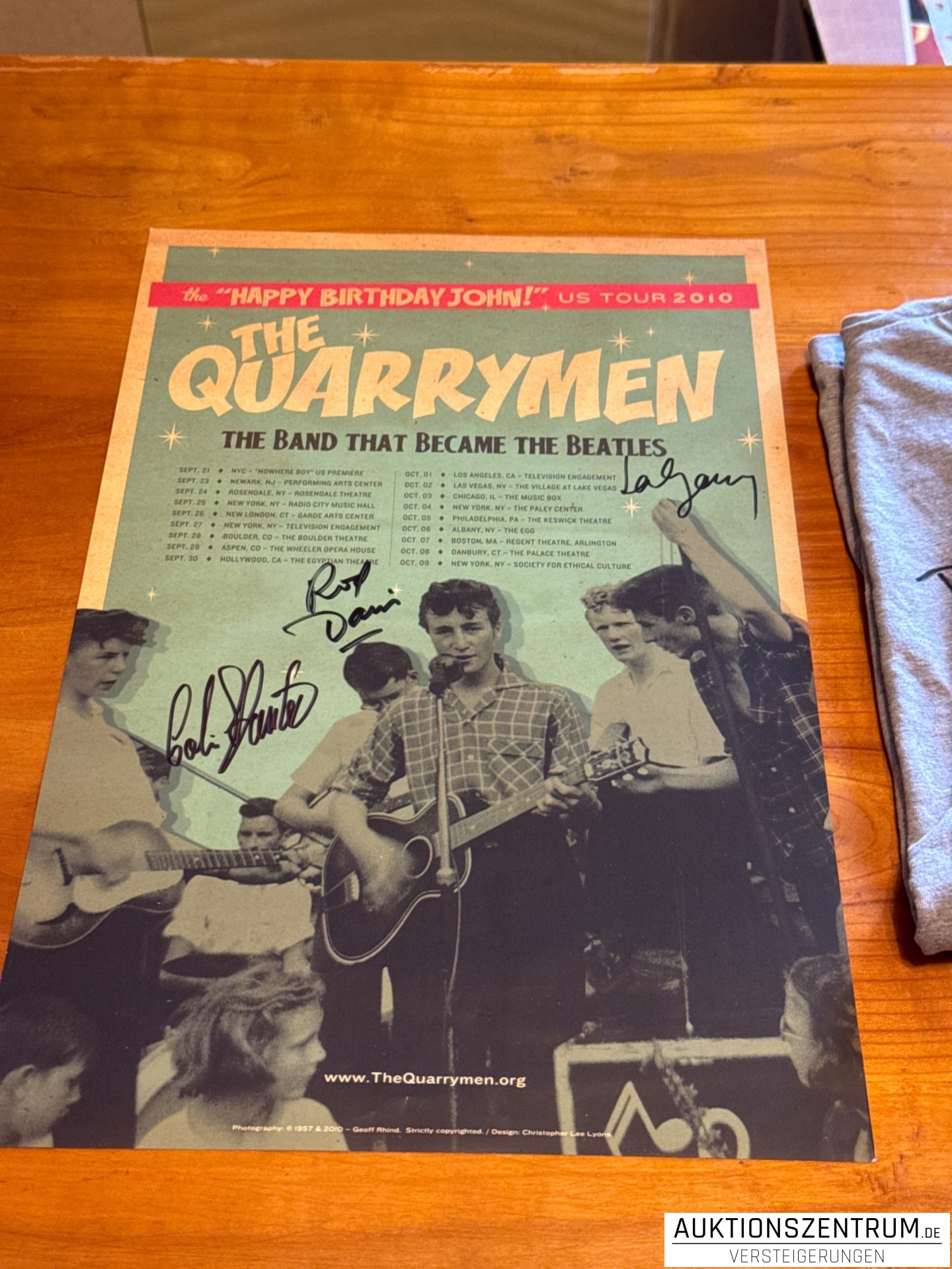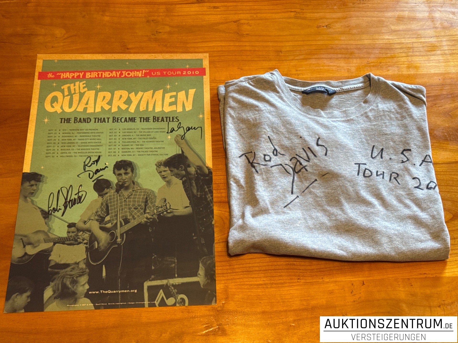 Lot 251 - The Quarrymen signed Poster + Rod Davis used & signed T-Shirt USA Tour 2010