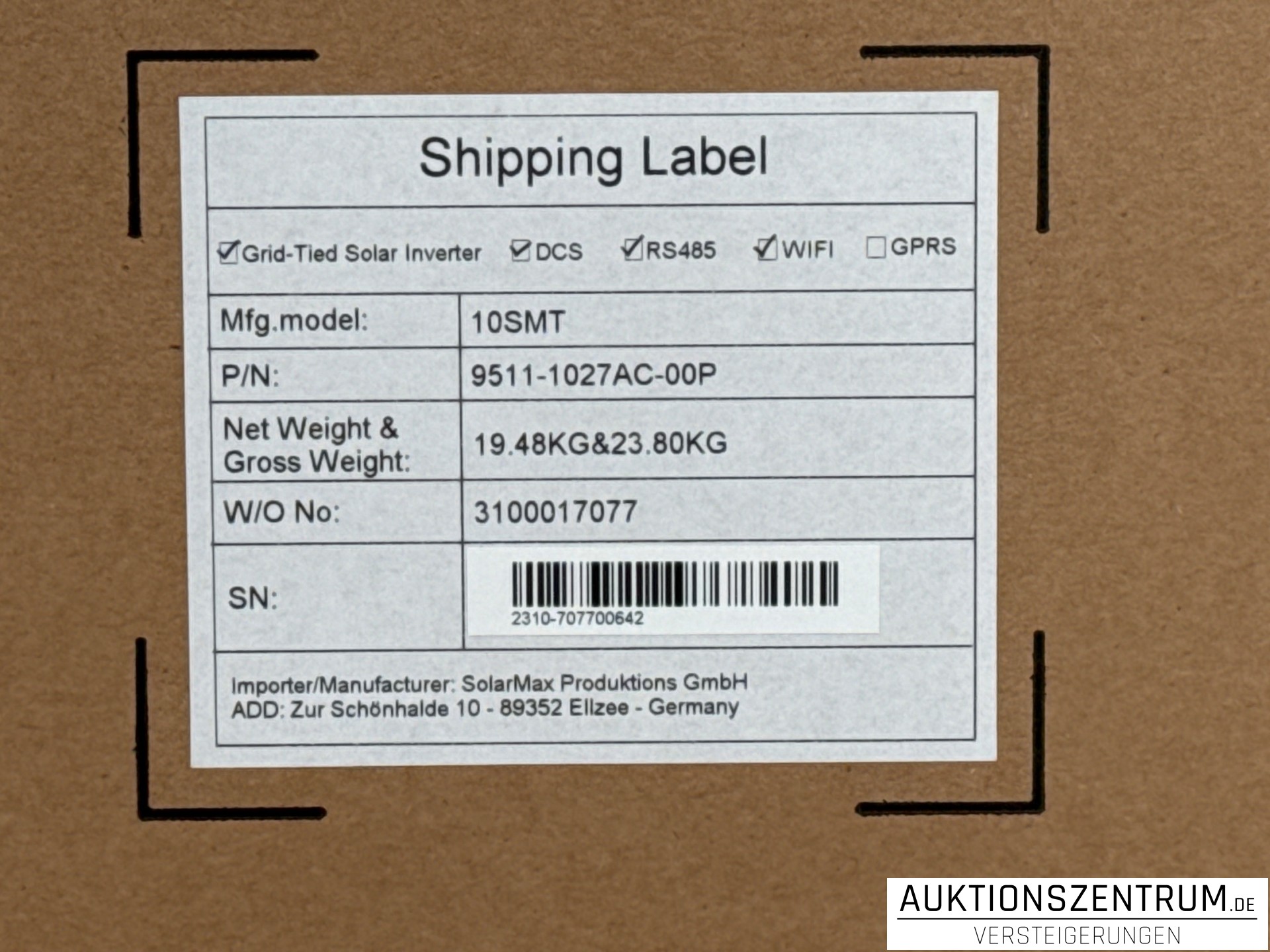 AMPERE.Inverter (SolarMax) 10SMT netzgekoppelter Solarwechselrichter mit LCD-Display (Artikel-Nr. 10110202).