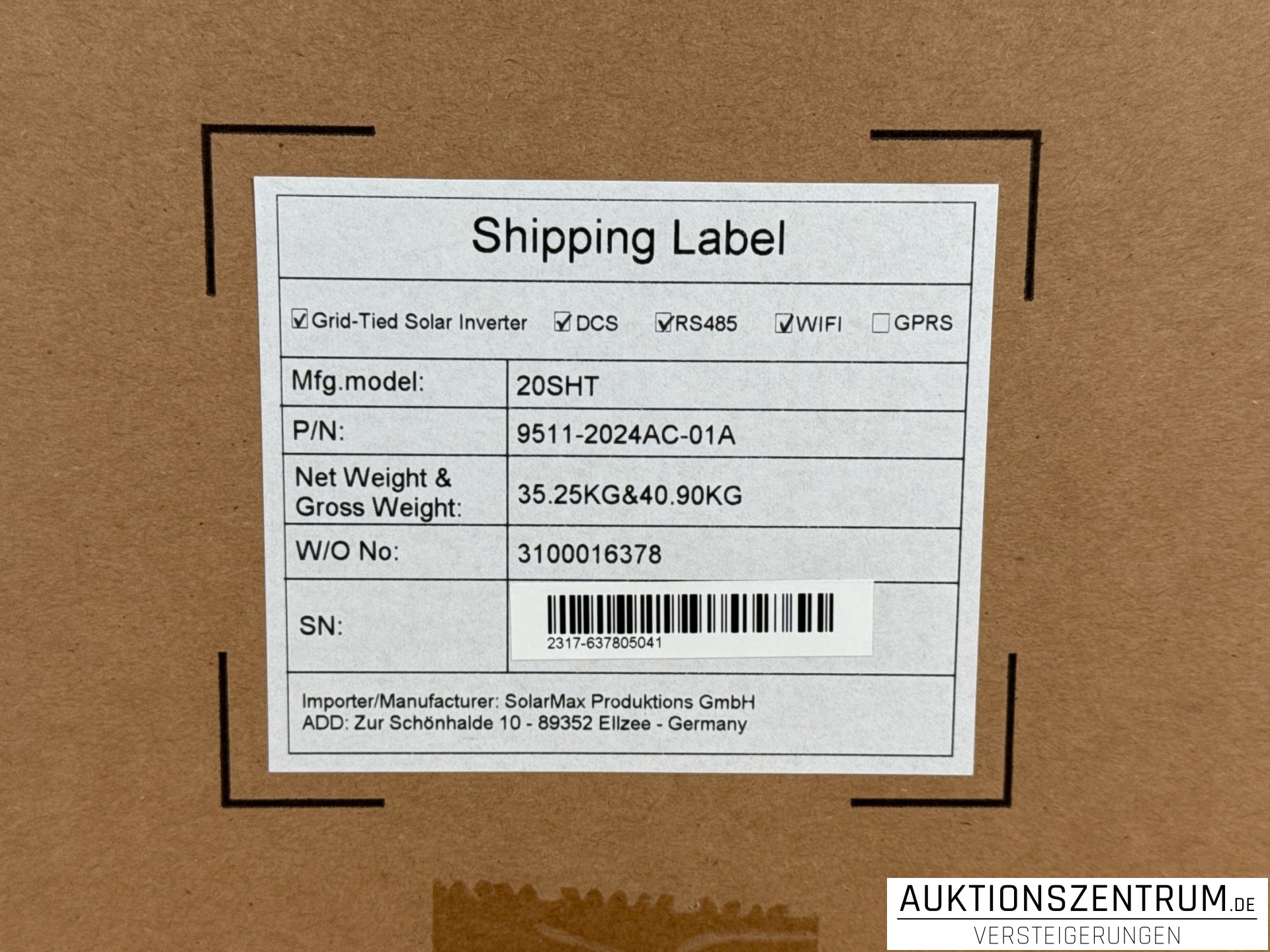 Lot 19 - AMPERE.Inverter (SolarMax) 20SHT 20 kW PV-Wechselrichter