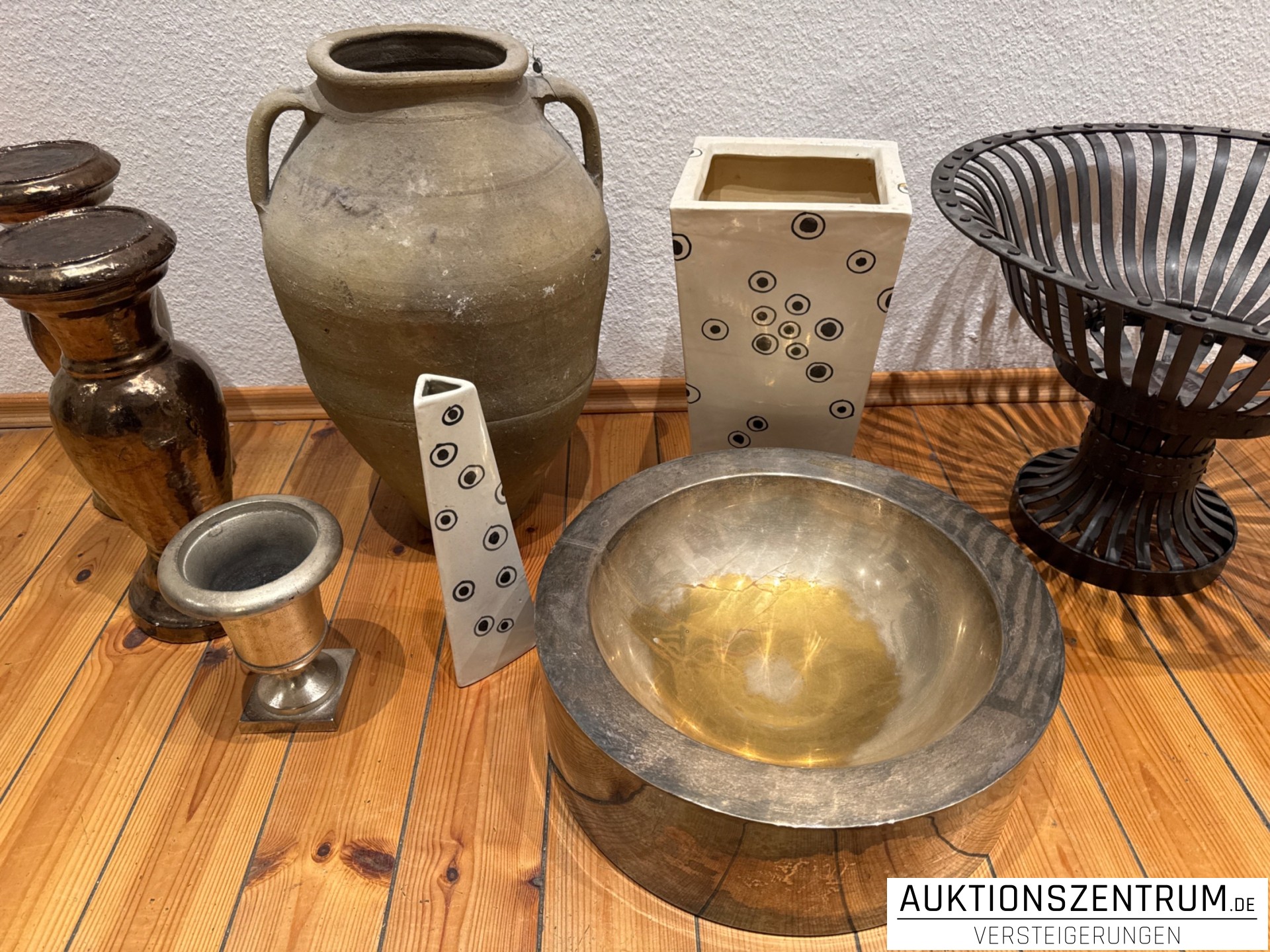 Dekoratives Konvolut Vasen, Schalen, Konsolen und Metallkorb