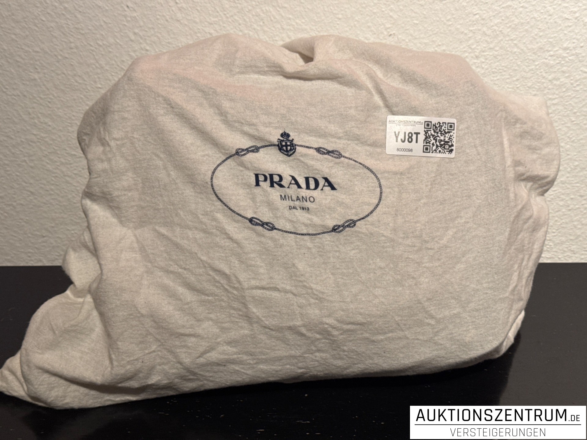Innenausstattung mit Reißverschlussfach. Die Tasche wird zusammen mit einem originalen Prada-Staubbeutel aus Stoff angeboten.