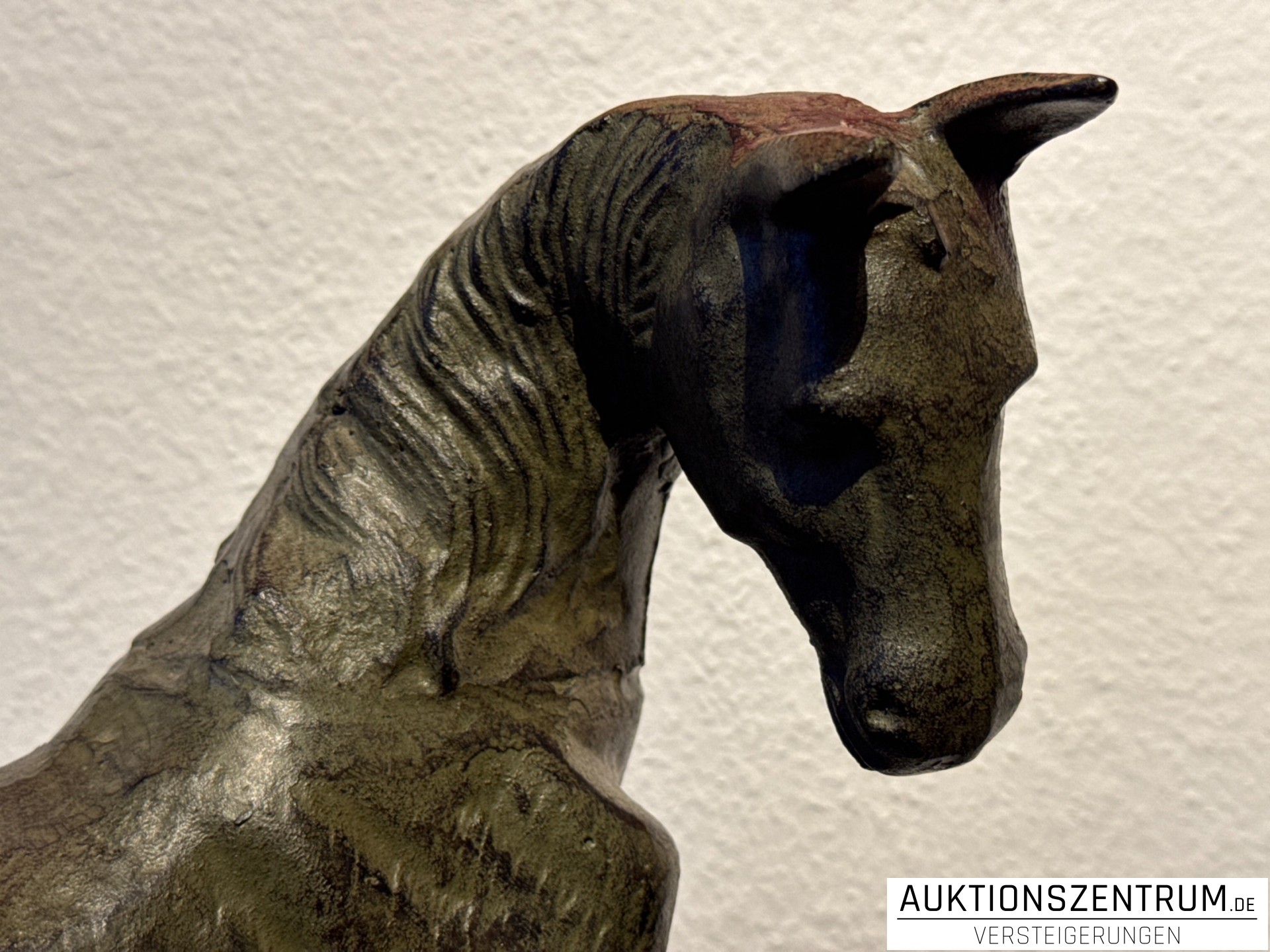 Die Bronze besticht durch ihre Größe und die dynamische Darstellung und eignet sich hervorragend als repräsentatives Dekorationsobjekt.