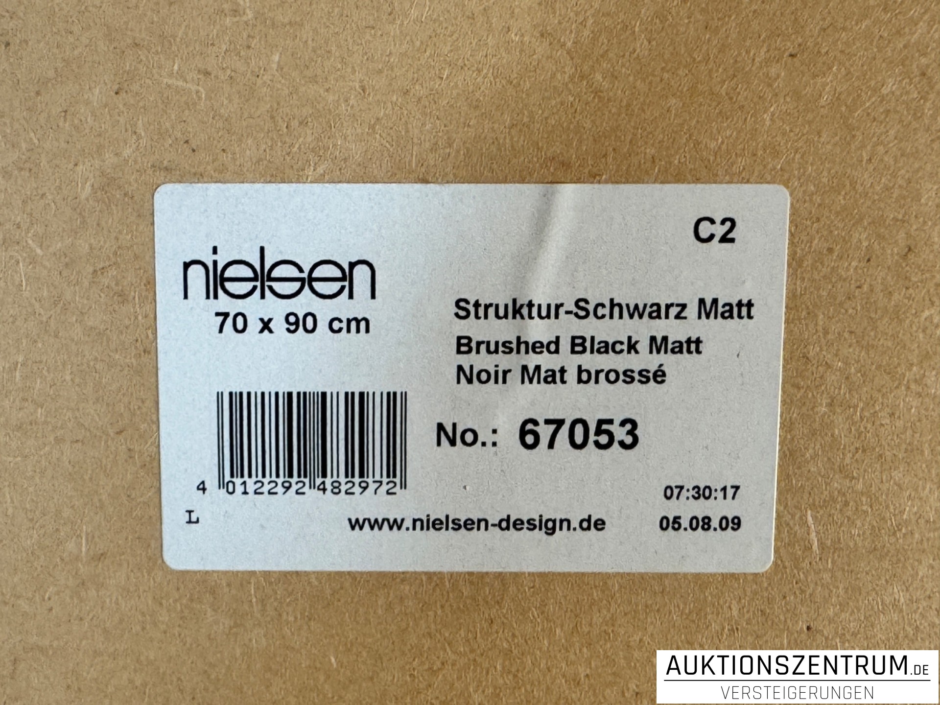 Farbdruck auf Papier, unter Glas gerahmt im schwarzen Nielsen-Wechselrahmen (Modell „Struktur-Schwarz Matt“, Herstellerangabe 70 × 90 cm).